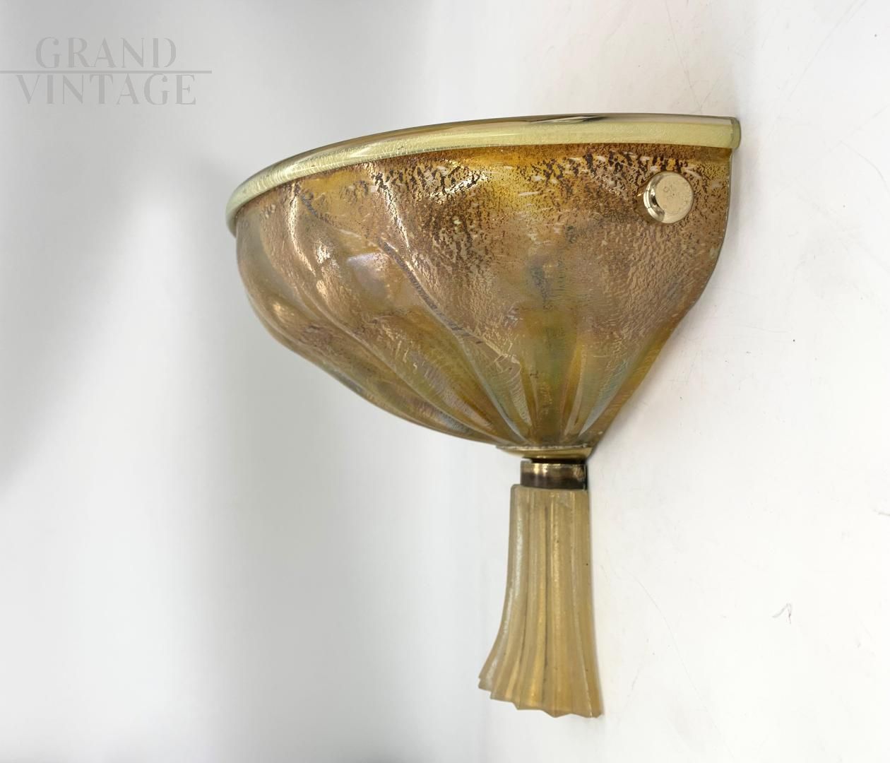 Fantastic and rare single wall light sconce attributed to the Cenedese company in multicolored Murano glass with acid etching and a rich gold suspension, Italy 1960s.