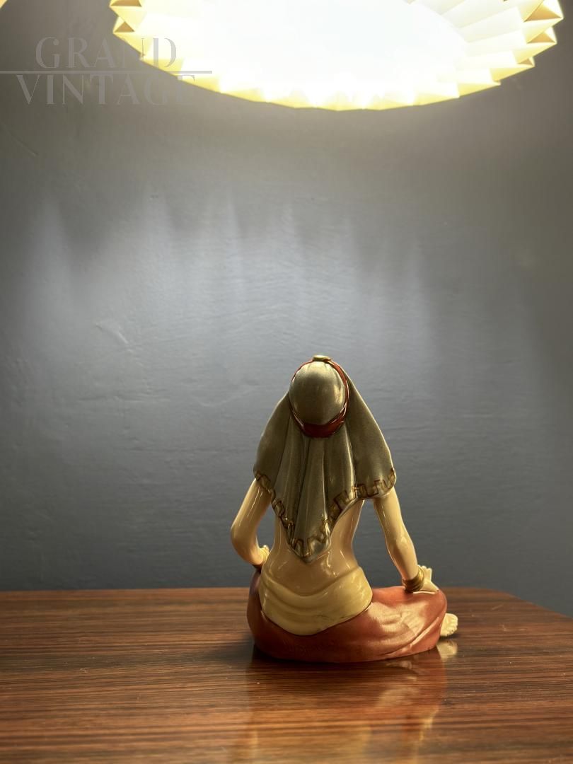 Meravigliosa scultura di ceramica di Arturo Pannunzio raffigurante un'odalisca, in splendidi smalti policromi, firmata A. Pannunzio, Vincenzo Bertolotti Milanese Ceramics. Perfetta, non ha difetti!