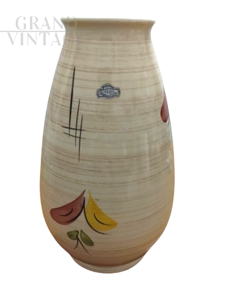 Beautiful vintage floor vase by Bay Keramik for W. Germany in ceramic with floral decorations, made in Germany in 1960.