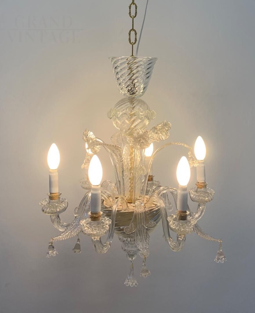 Chandelier attributed to Seguso from the 1940s with 6 glass candle lights