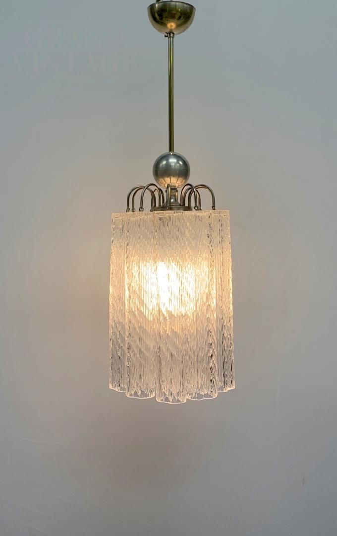 The chandelier is all original, has very few signs of aging, fantastic and intact transparent glass, electrical system redone and working with different light points that support E14 type bulbs, the use of LED bulbs is recommended. The structure is made of iron, and the glass can be dismantled to facilitate safe transport. Excellent element that can illuminate different rooms: from the kitchen to the living room, from the entrance to the bedroom and bathroom.