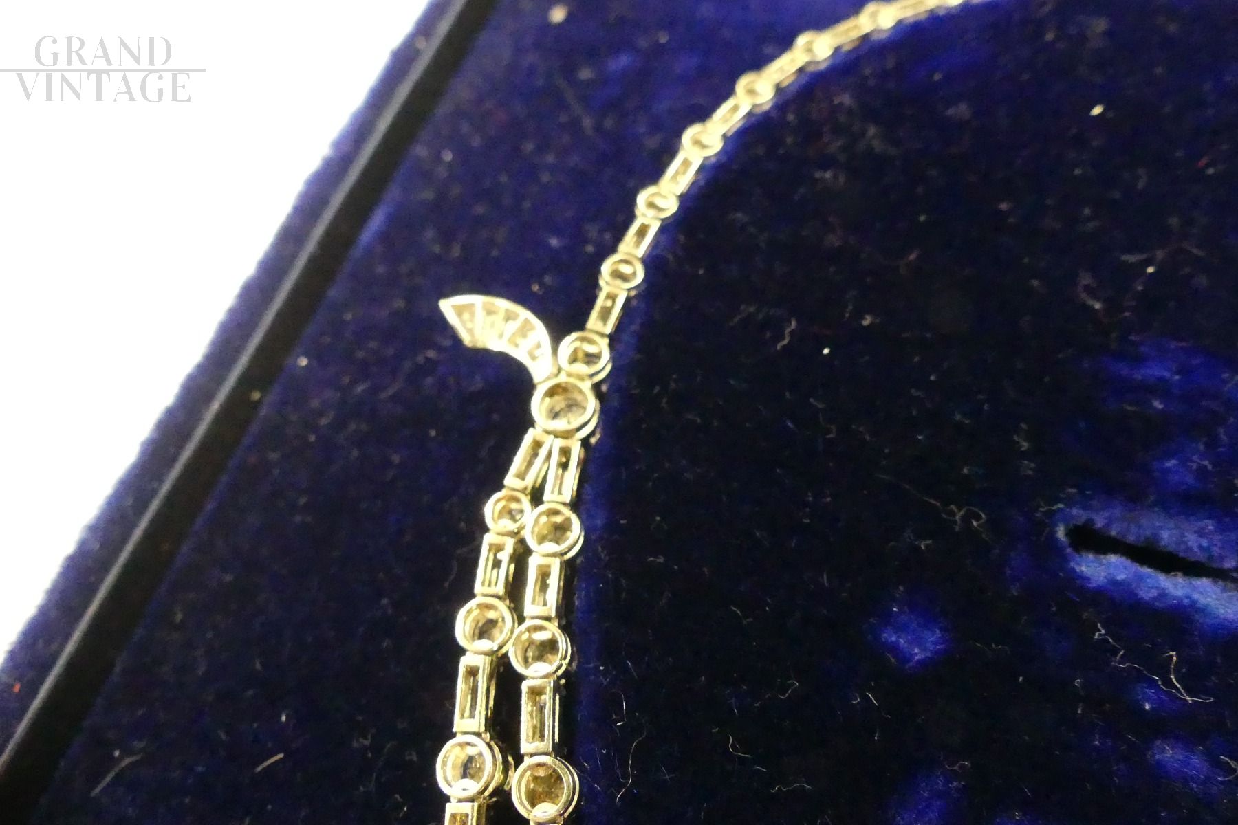 - 16 transparent and colorless natural diamonds in navetta, trapezoidal, rectangular and square shapes, with modified brilliant and stepped cuts.