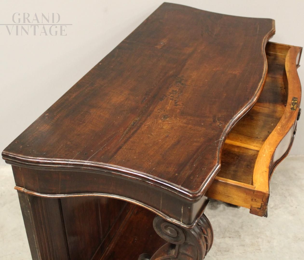 Antique Charles X console in solid walnut from the first half of the 19th century, of Italian origin.