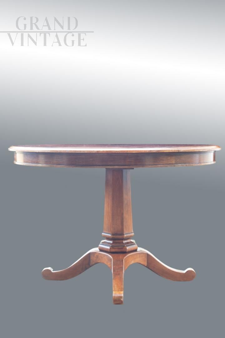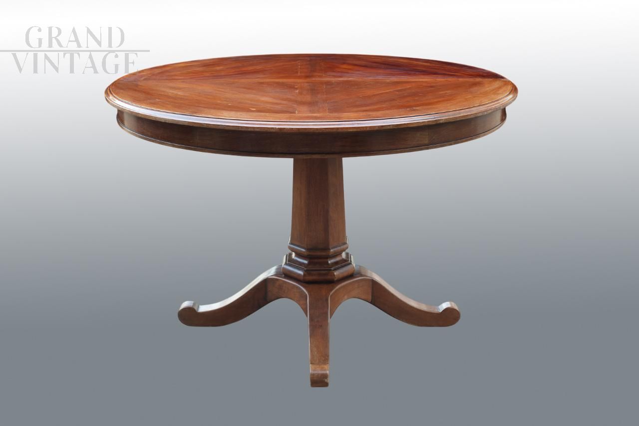 Mahogany table from the well-known Italian company L'origine. The table is supported by a large central baluster in Charles X style, equipped with 4 wavy legs. Veneered in mahogany, Signed under L’ORIGINE Completely restored L'Origine is an Italian company active in the interior design sector that produces high-quality furniture interpreting international taste.