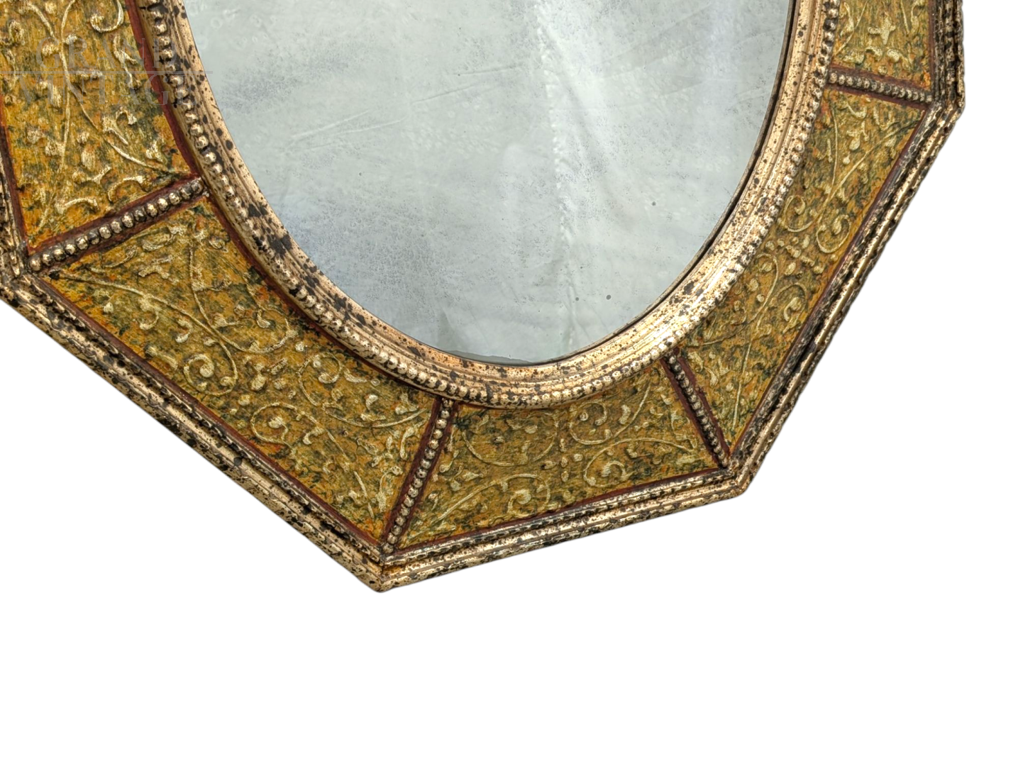 Beautiful classic mirror in Venetian Baroque style with an important octagonal frame in carved wood, in good condition, the wooden part shows natural signs of aging, the mirrored part reflects with an enchanting antique effect.