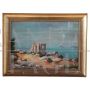 This exquisite Italian oil on plywood painting, dating from the first half of the 20th century, presents a captivating landscape that embodies the charm of southern Italy. The painting is signed in the lower right, but the artist has not been identified. The scene opens with a cliff that meets the sea, where two figures find refreshment in the shade of architectural ruins. Their serene posture suggests a moment of quiet reflection as they admire the expansive view and bask in the warmth of a sunny day. The composition captures a harmonious blend of nature and human presence, evoking a sense of tranquility and leisure. The painting has good painterly quality, with careful attention to detail and color that bring the landscape to life.