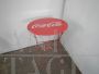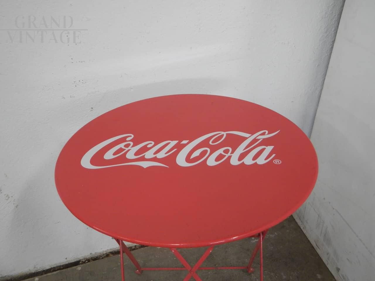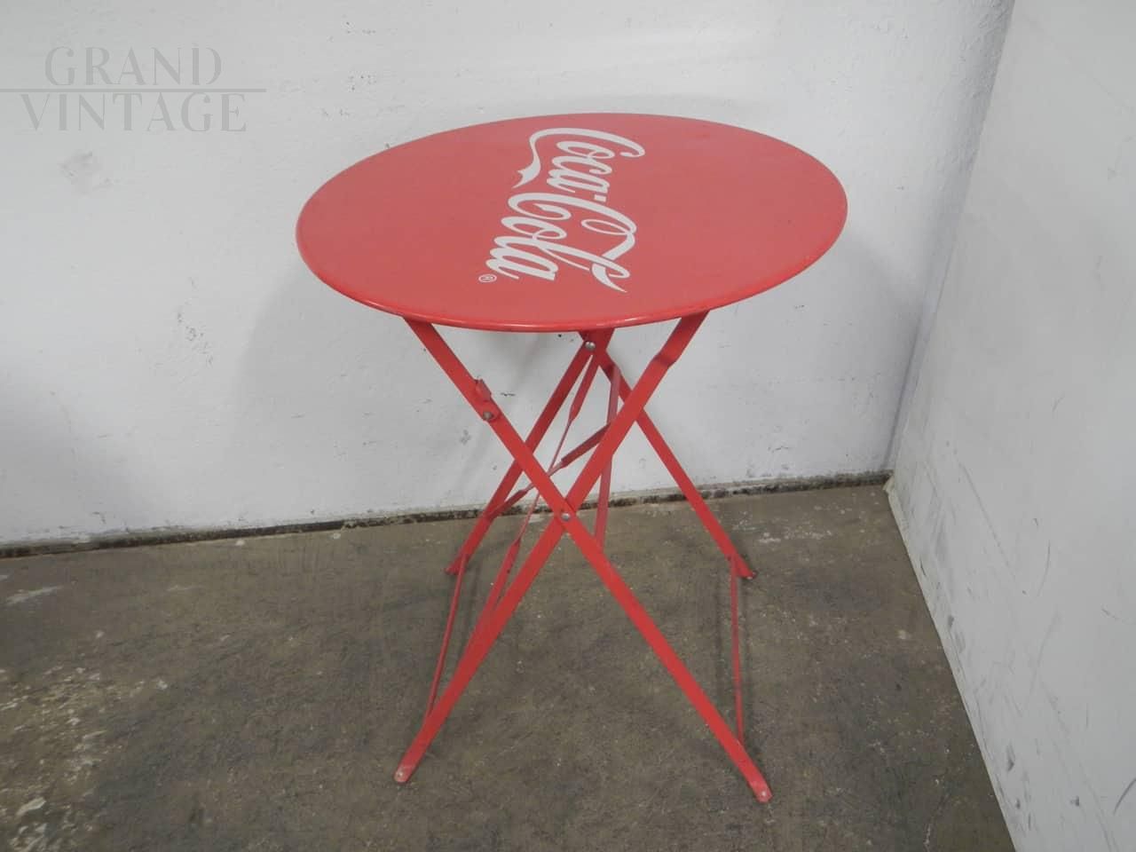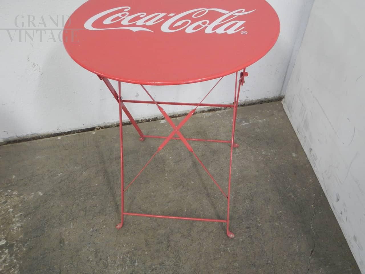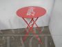 Folding garden table in red colored iron with Coca-Cola logo on the top, made in France in the 70s. Good structure with signs of use, treated with iron varnish while preserving its original appearance. Available in 2 pieces, the indicated price is for a single table.