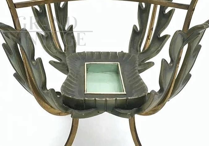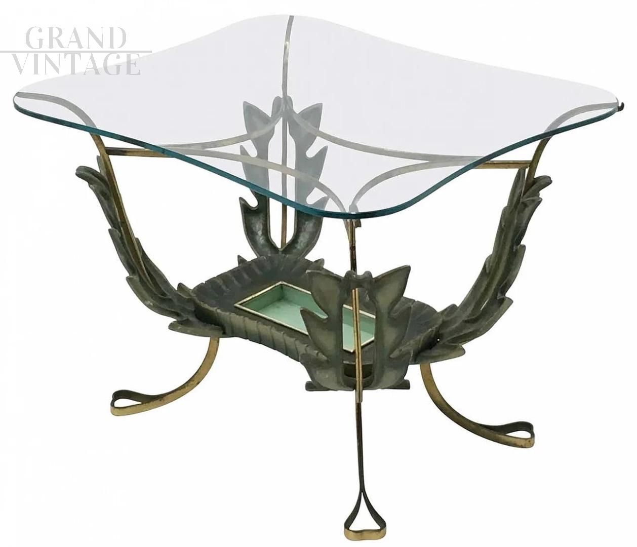 Beautiful design coffee table by Pier Luigi Colli with a golden metal and brass structure finely crafted with vegetal motifs, the top is in shaped glass, Italy 1950s.