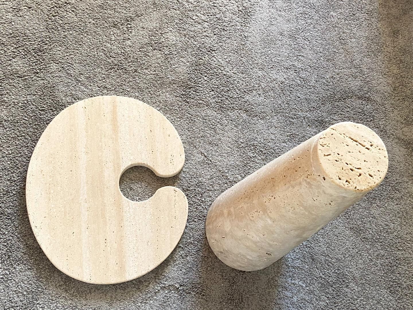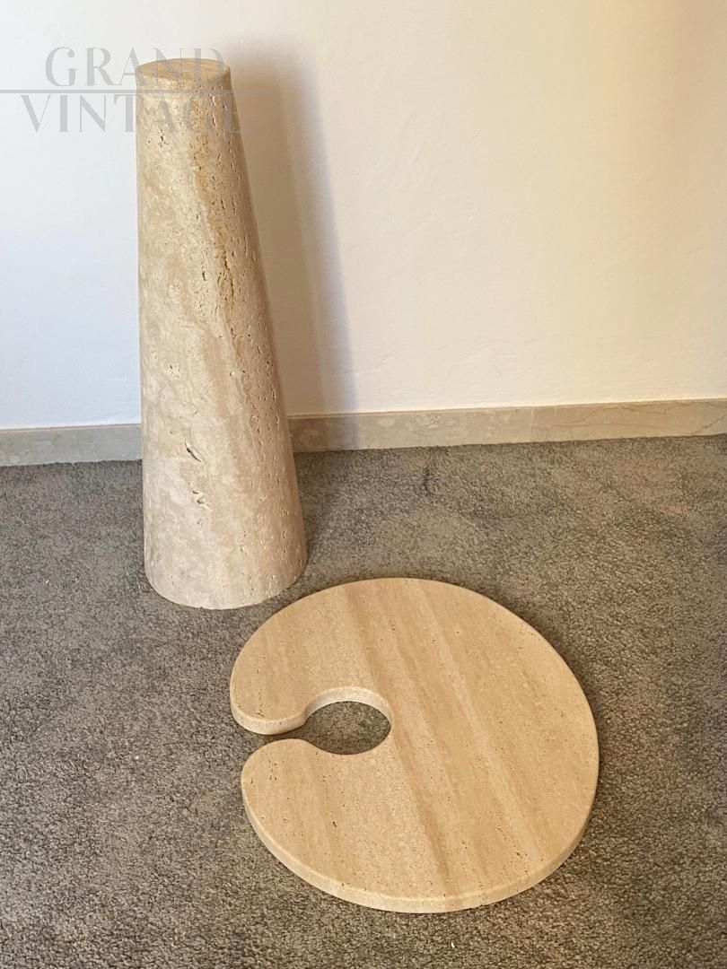Coffee table designed by Angelo Mangiarotti in Italian travertine, Eros series