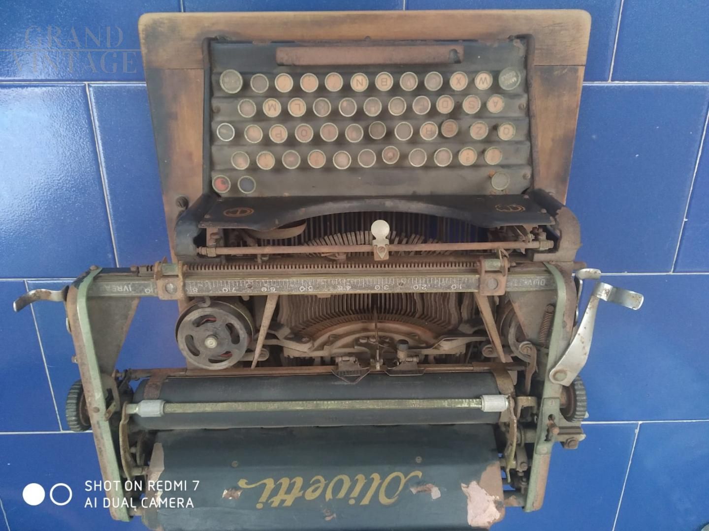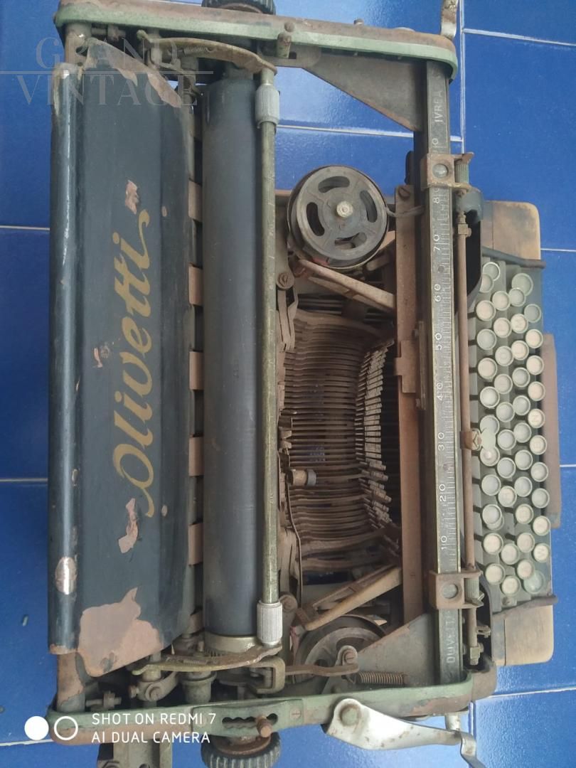 Precious century-old Olivetti M20 typewriter, with wooden support. To be kept in its current state as an enchanting antique object or, if you prefer, to be restored to restore its original functionality and aesthetics.