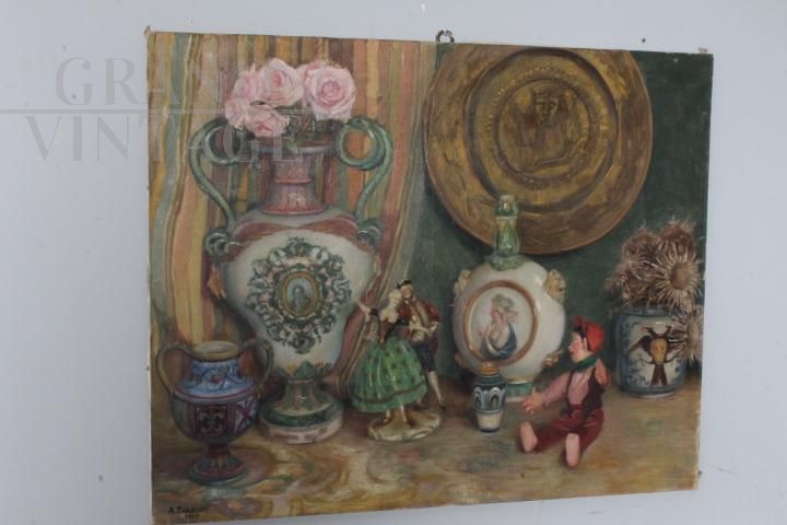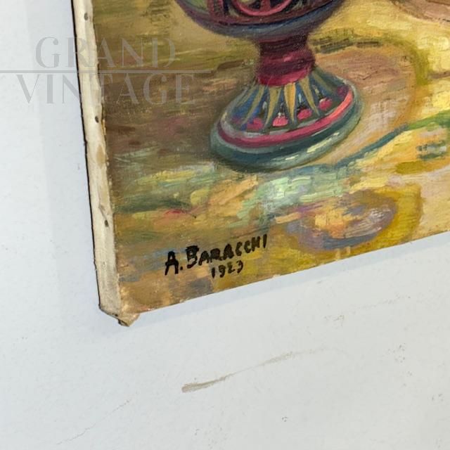 Antique oil painting on canvas by Augusto Baracchi. (Modena 1878 – Milan 1942) Dated and signed 1923 “Collector”. Good state of preservation. size 100 x 80