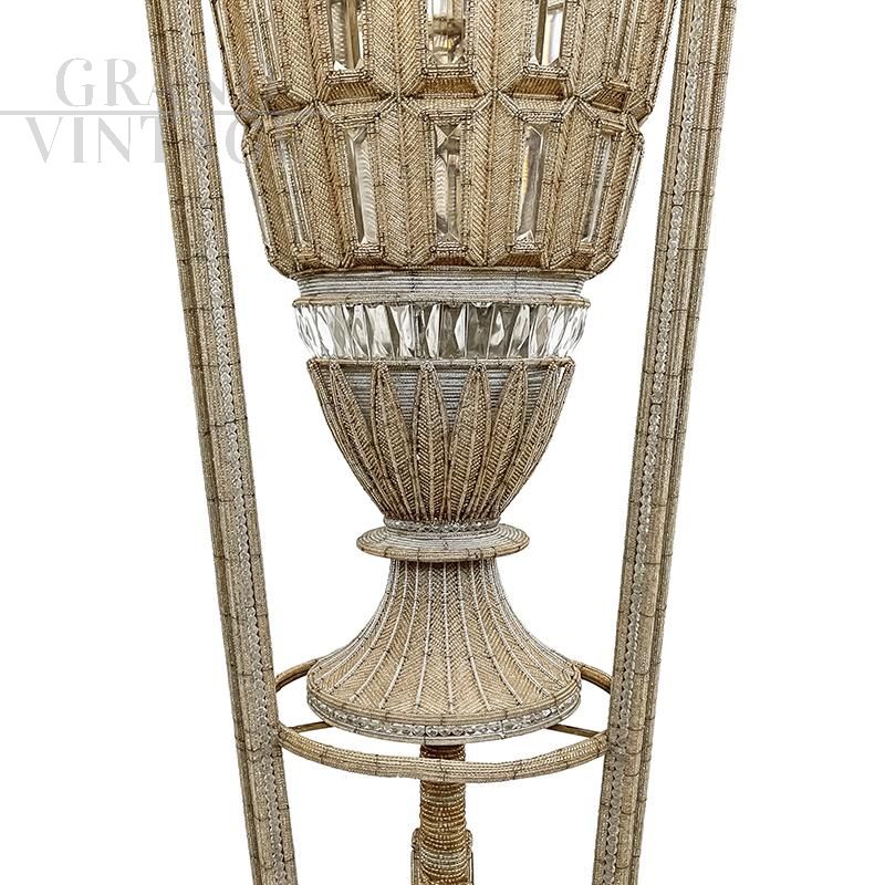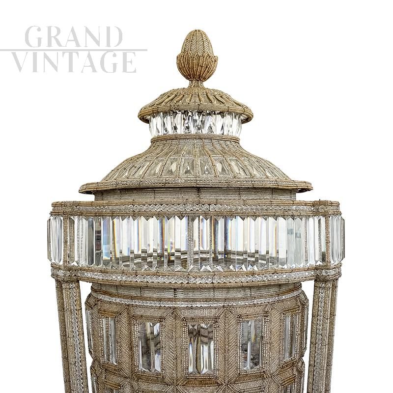 Column floor lamp with vase, covered with Murano glass beads