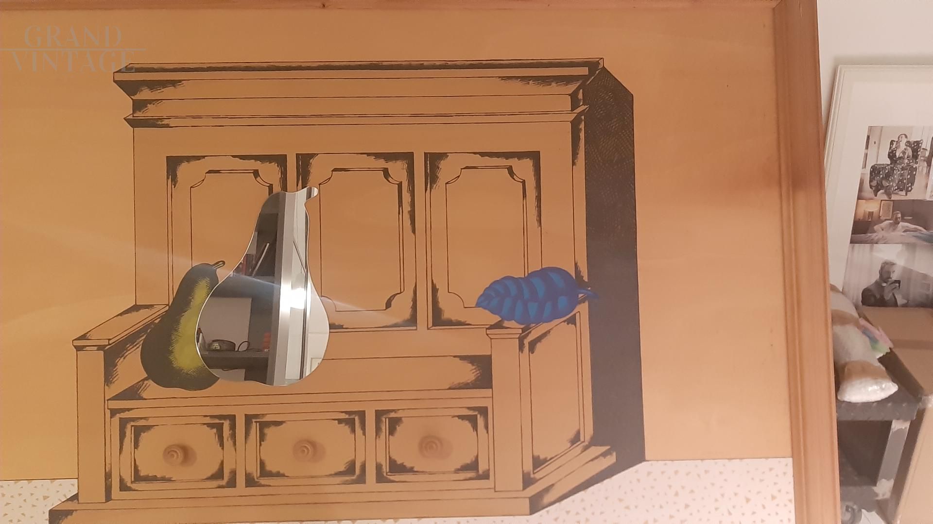 Concetto Pozzati painting made in silkscreen style on wood plus mirrored and embossed elements, 99 copies made in the period 1975 - 1982.