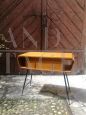 Oak wood console with brass structure, originally used to hold a Singer sewing machine.