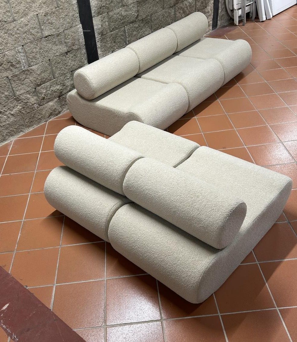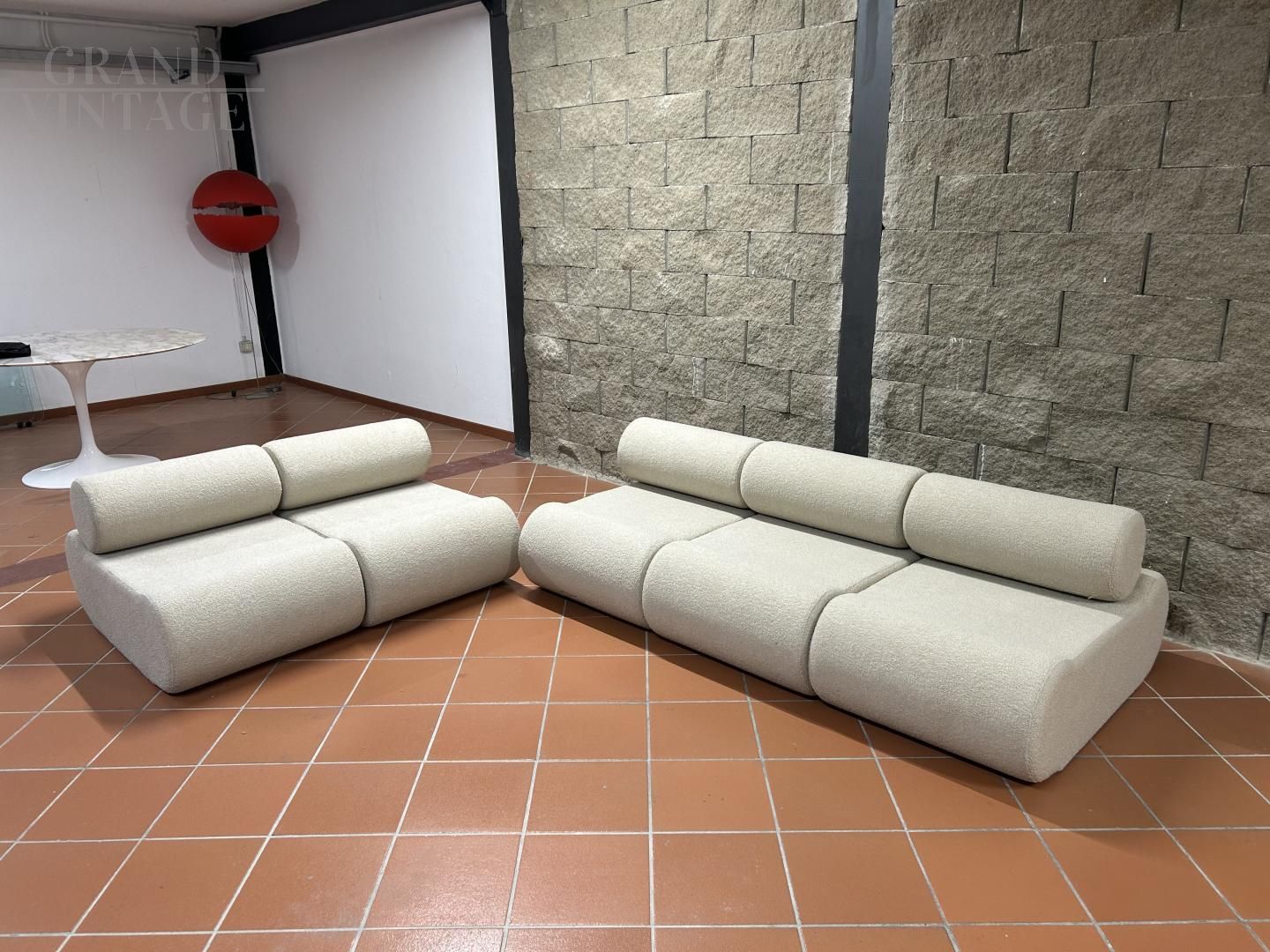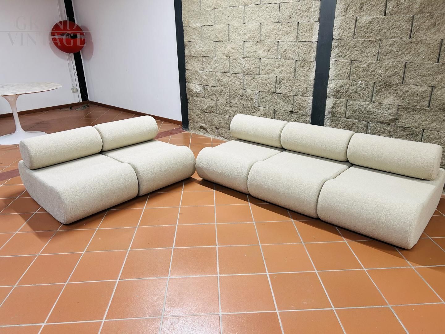 Corbi modular sofa by Klaus Uredat composed of 5 elements covered in bouclé fabric, an icon of minimalist design, in excellent condition.