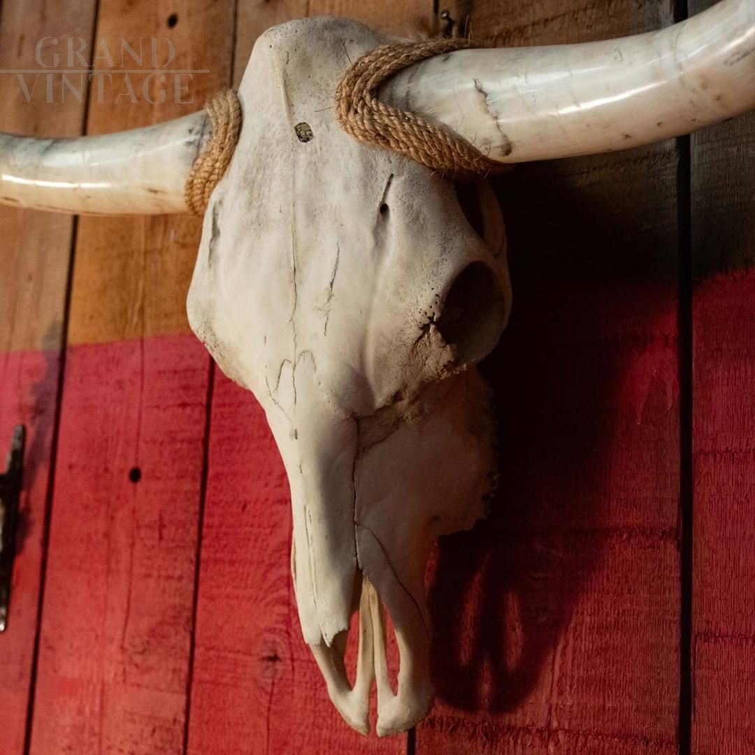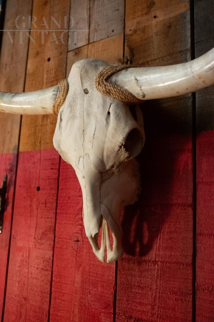 Wooden trophy with cow horns, a unique piece of furniture that adds a touch of originality and rusticity to your home.