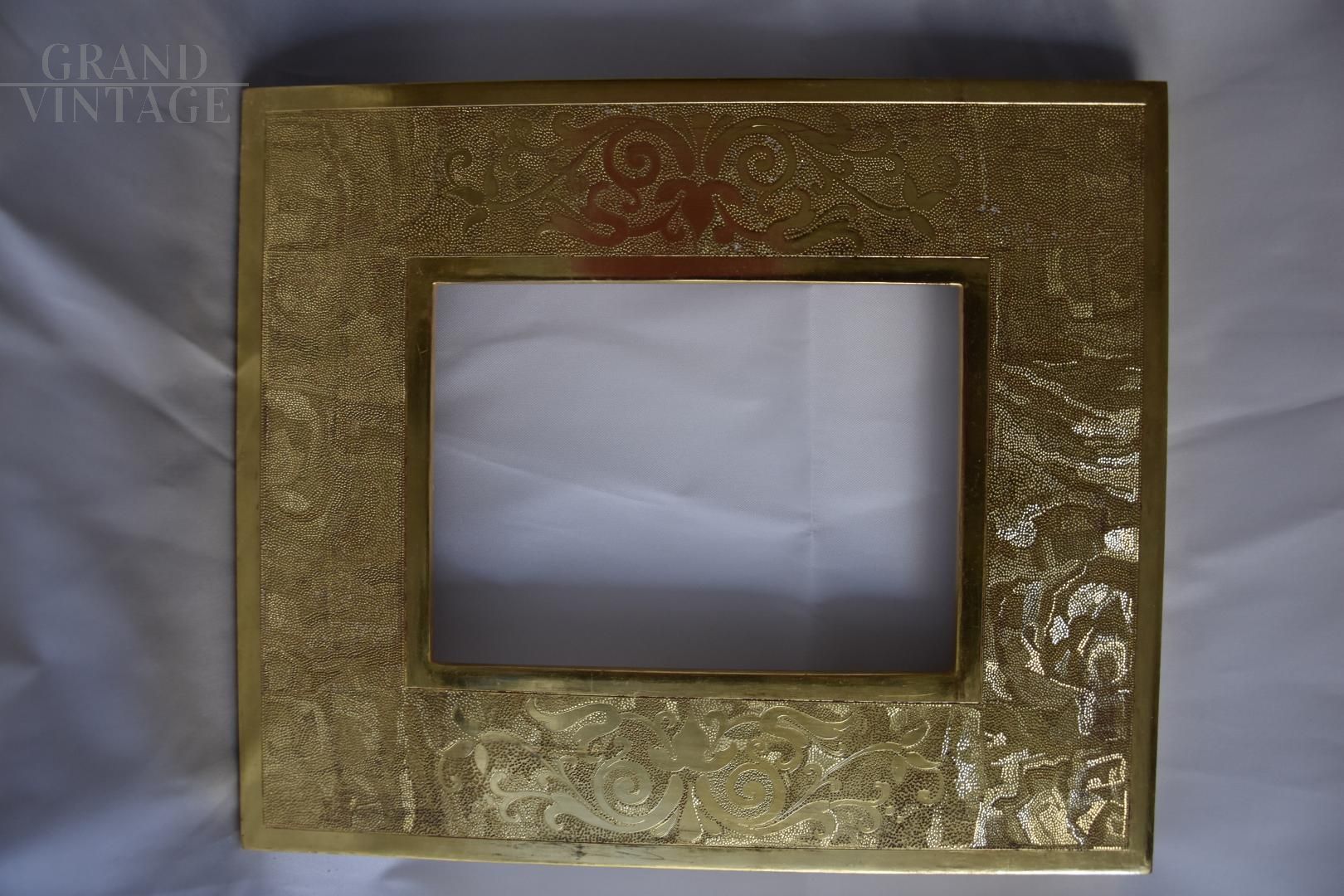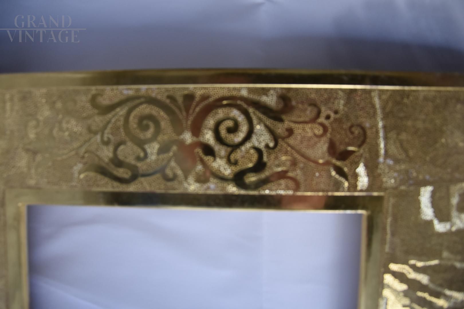 Valuable gilded frame made by the artist Andrea Busnelli in wood and 24 K gold, dated 2015. A handcrafted work of excellent workmanship, ideal for containing mirrors, modern portraits or works of art, decorated with geometric and spiral motifs, the result of decorative skill of the artist. Painting with certificate of originality signed by the artist.