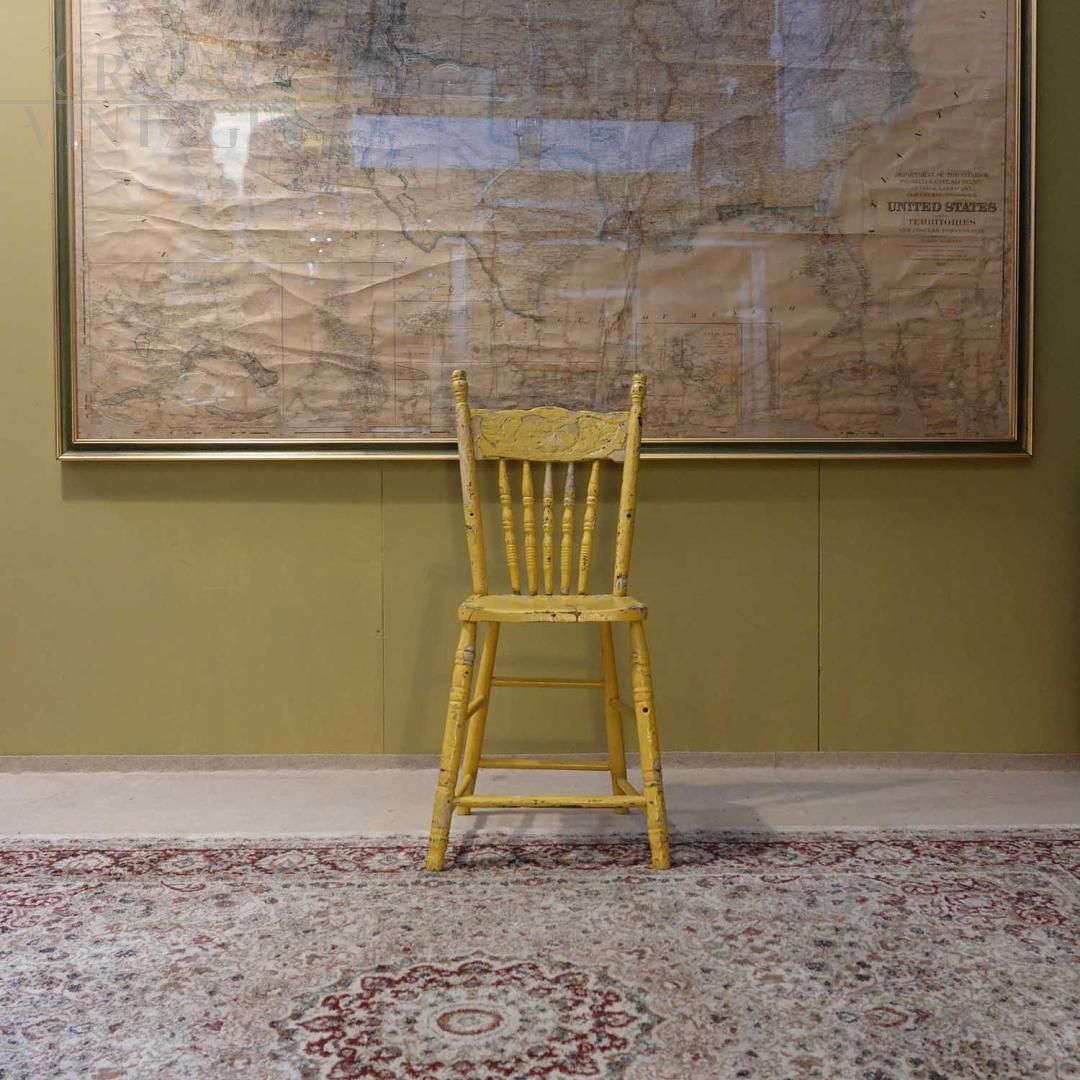 Single chair in country style in yellow lacquered wood, presents the beautiful signs of time.