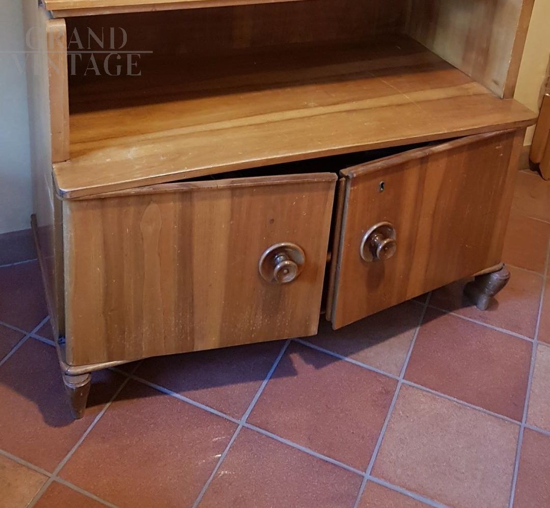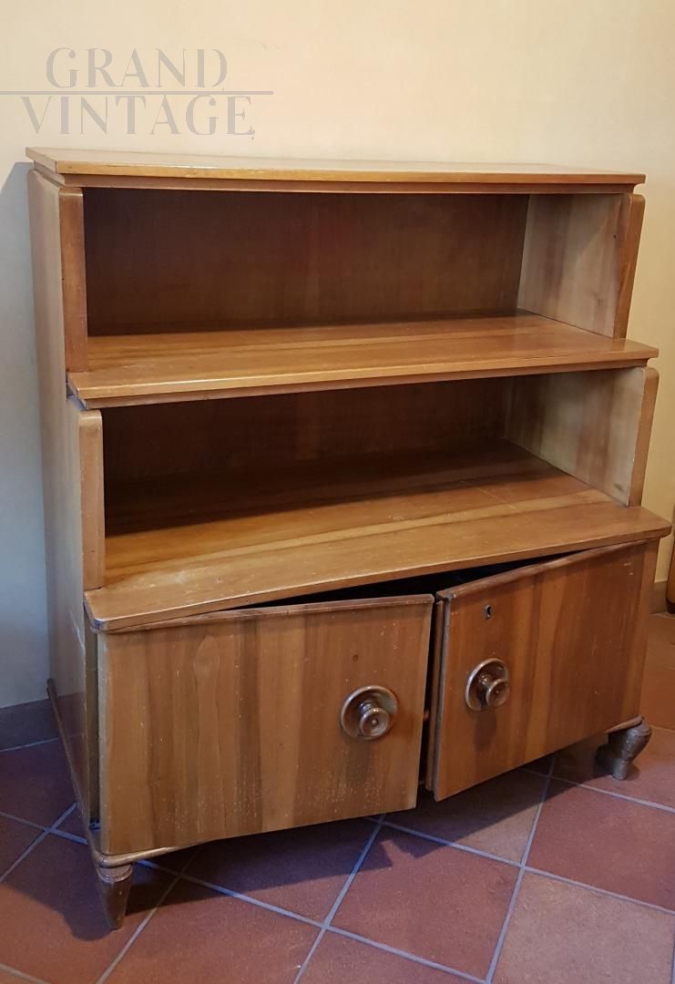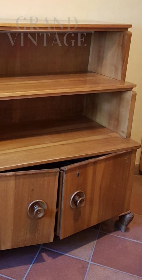 1940s art deco bookcase buffet & hutch in solid wood, with a lower part with two doors and an upper part with open shelves. In good condition.