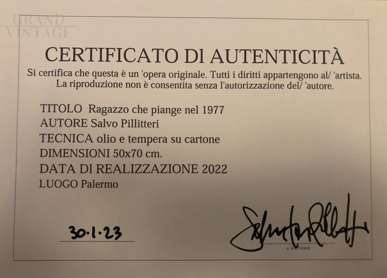 Crying boy in 1977 - painting by Salvo Pillitteri oil and tempera on cardboard