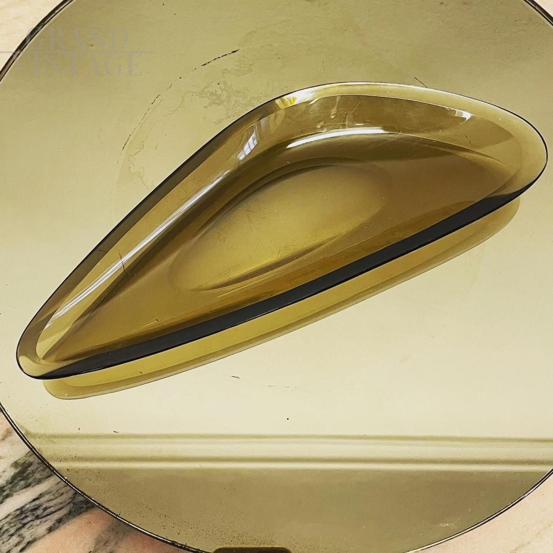 Elegant ashtray or coin tray by Fontana Arte, in amber-colored cut crystal, Italy, around 1961. Bibliography: The Quaderni di Fontana Arte n ° 3 and n ° 6