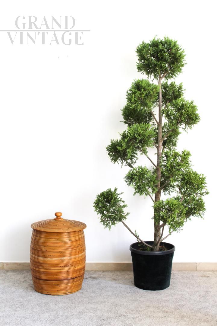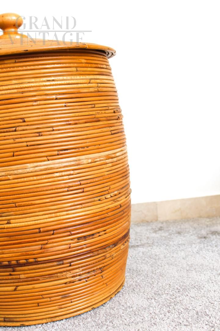 Vintage wicker basket with cylindrical shape, Italy 70s, the splendid rounded shape and the great quality give it an incredible scenographic appearance. The basket is in excellent condition.