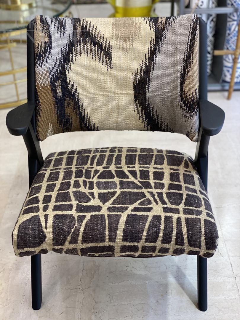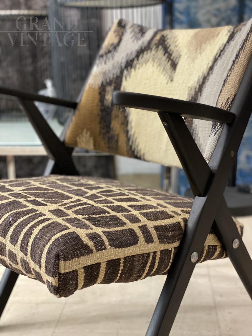 Armchair by Industrie arredamenti Dal Vera, Italy 1950-1959, re-lined with handmade Kilim Afghan with colored wool with vegetable dyes, unique piece.