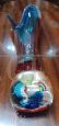 Beautiful deco vase in red and blue glass with transparent base with dipped decorations of three colored flowers and blue bubbles, a truly unique and interesting piece.