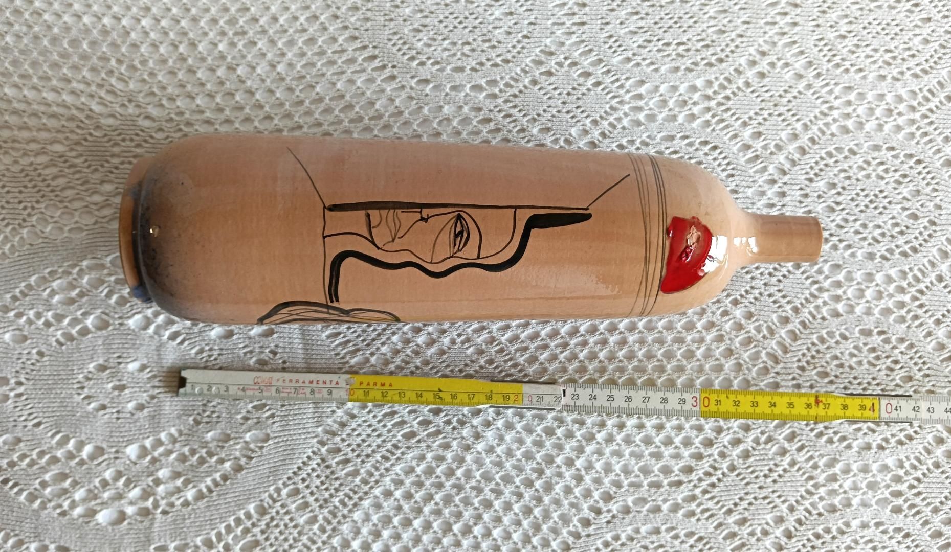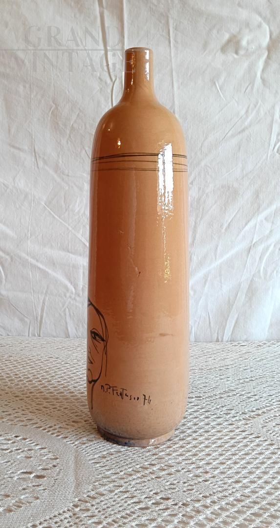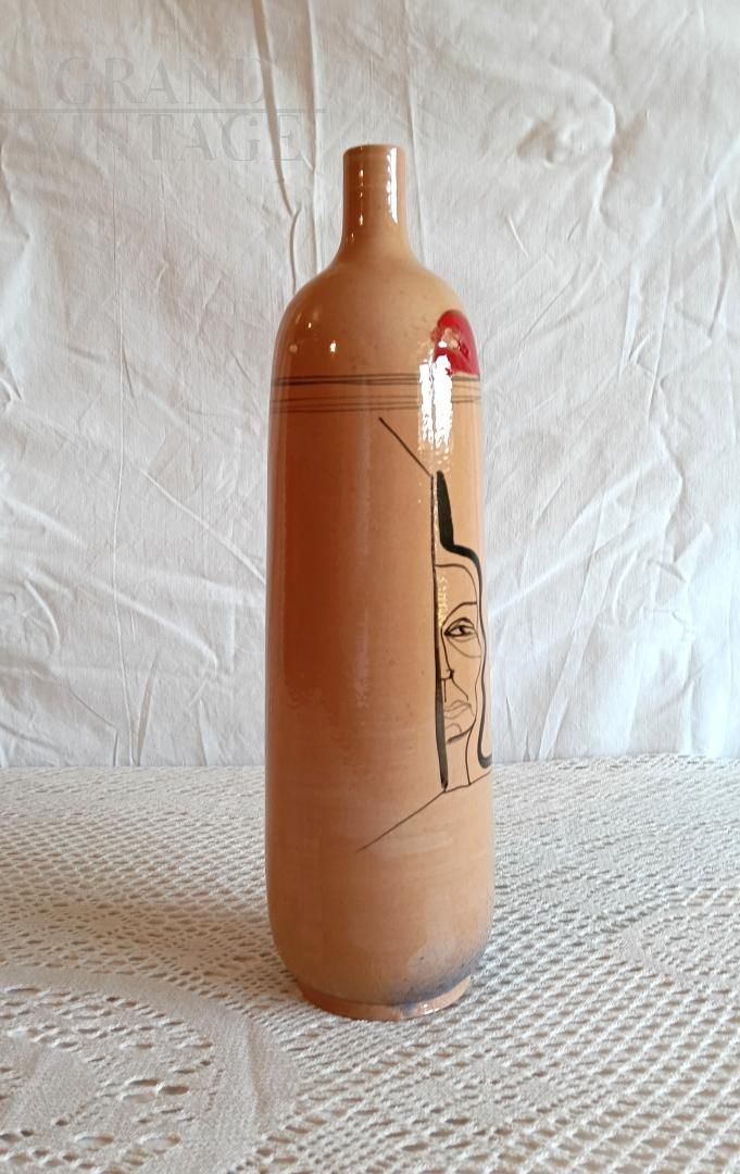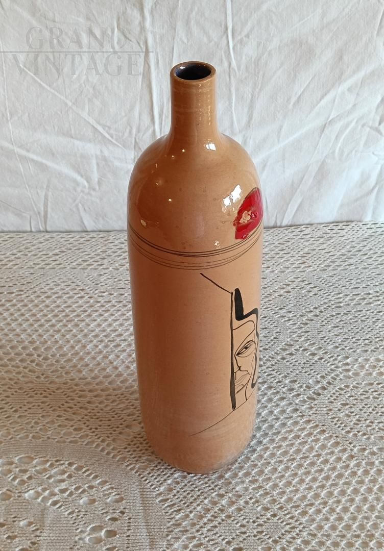 Decorative glass bottle with abstract figure, 1974