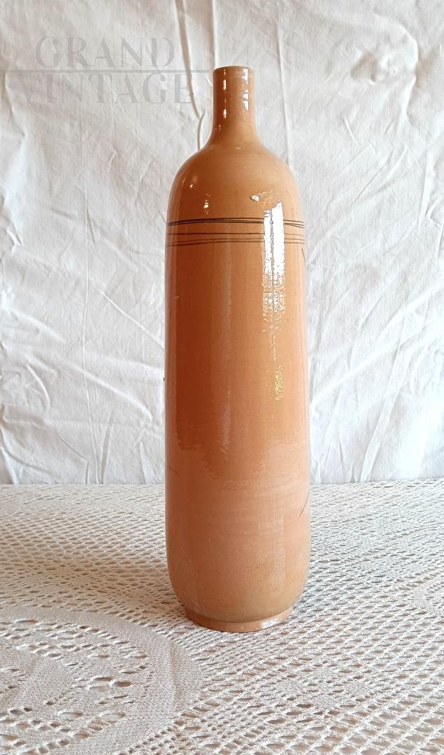 Decorative Bauhaus style bottle vase, made and dated 1974, with artist's signature (not legible), the design is inspired by Le Corbusier and his drawings in the villa E1027. The bottle is made of glass with internal and external paints.
