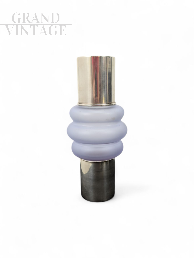Glass and 925 silver vase from the 70s with a particular design, in excellent general condition, small signs of aging.