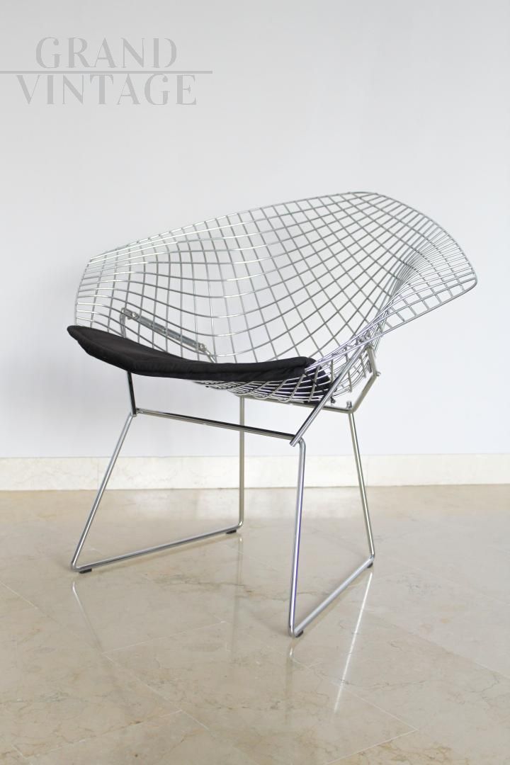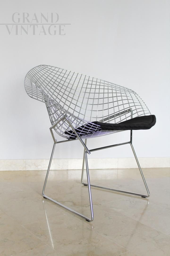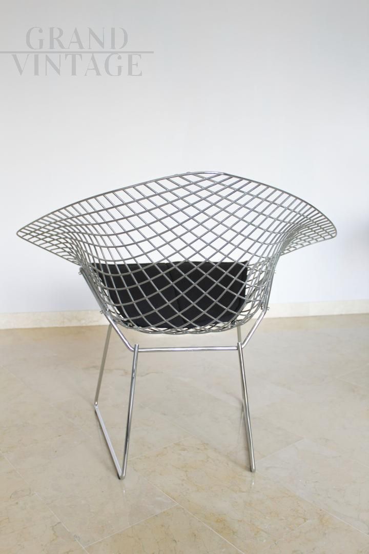 Diamond chair - diamond chair by Harry Bertoia for Knoll, Italy 1980s, with the classic steel mesh structure, complete with cushion, in excellent condition, visible signature, unmistakable and exciting design
