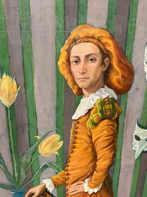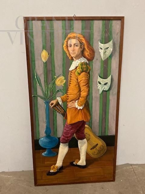 Homage to Watteau - painting with a boy in a medieval costume by L. Palermo, 1981