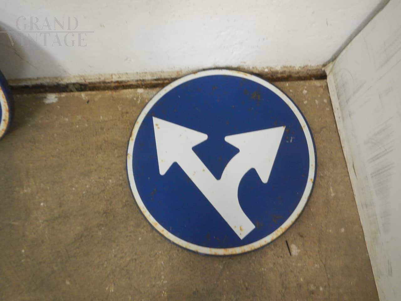 Direction allowed vintage Italian road sign, 1980
