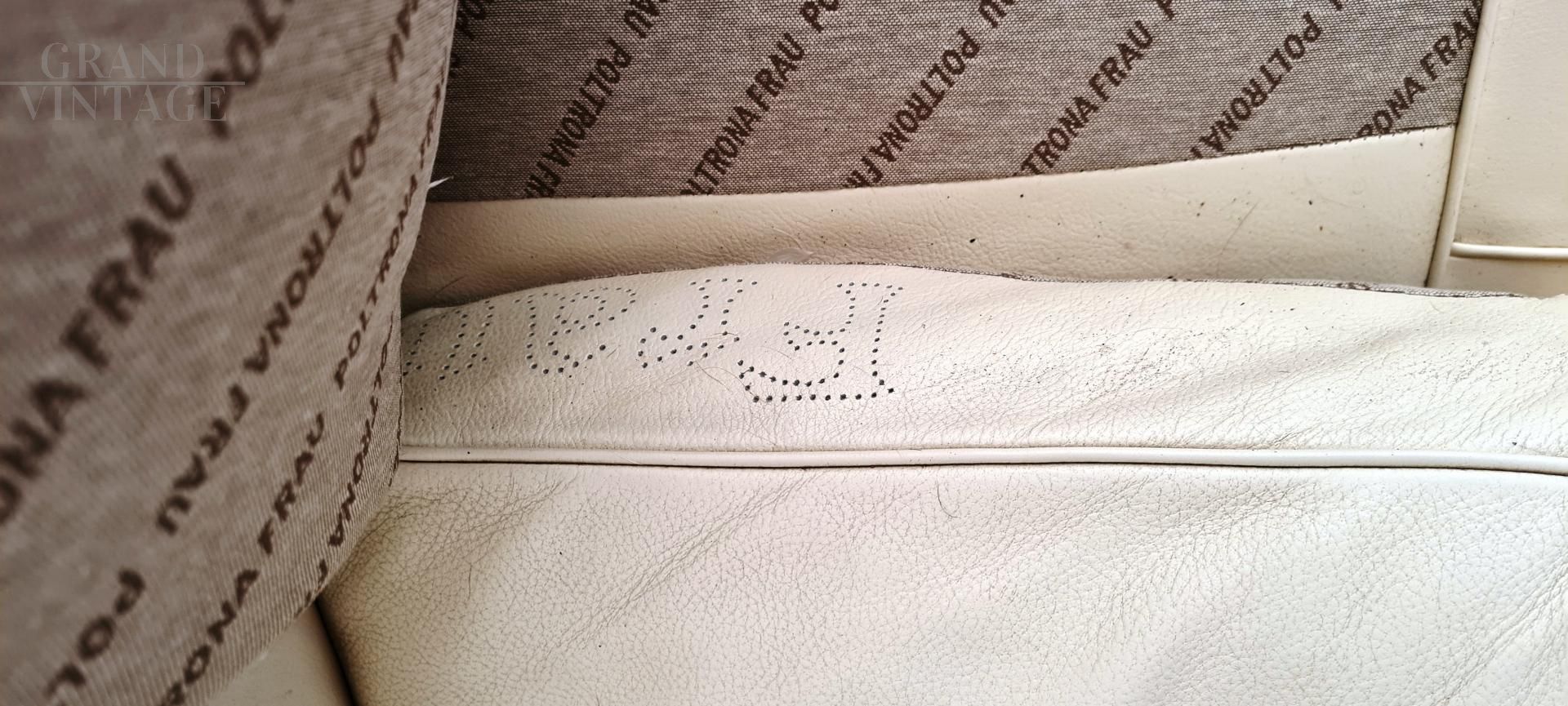 Beautiful Poltrona Frau Dream model sofa in genuine white leather, design rich in comfort and great attention to detail. The curled armrest, the double button and the leather piping for the back cushions create elegant shapes that are perfect for your living room. For this sofa, Poltrona Frau has created a non-removable cover, easy to clean and very resistant, and a polyurethane padding.