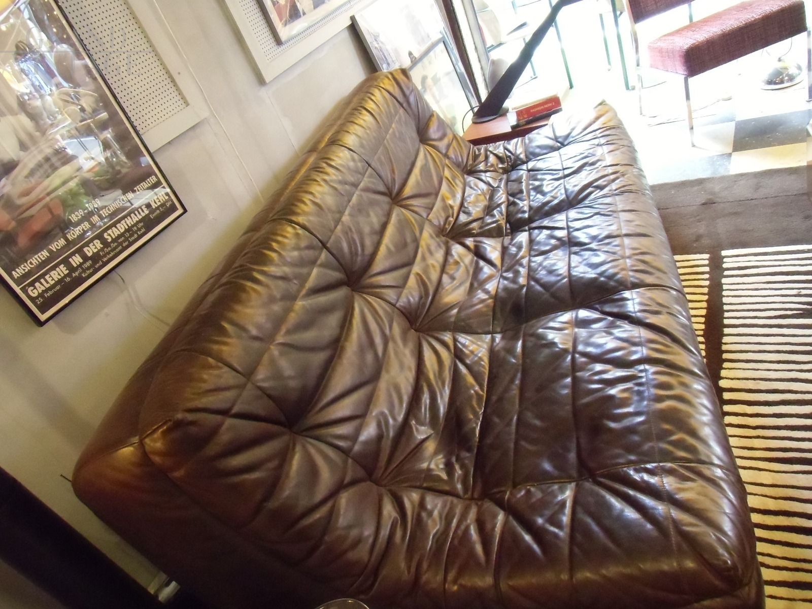 "Beautiful couch from 1972 attributed to Michel Ducaroy, in chocolate-colored leather.