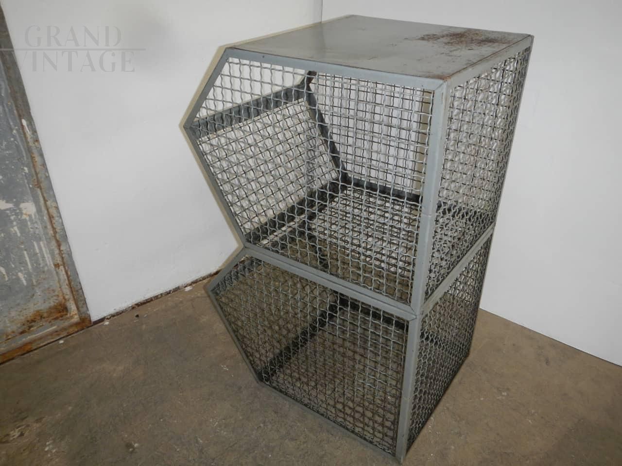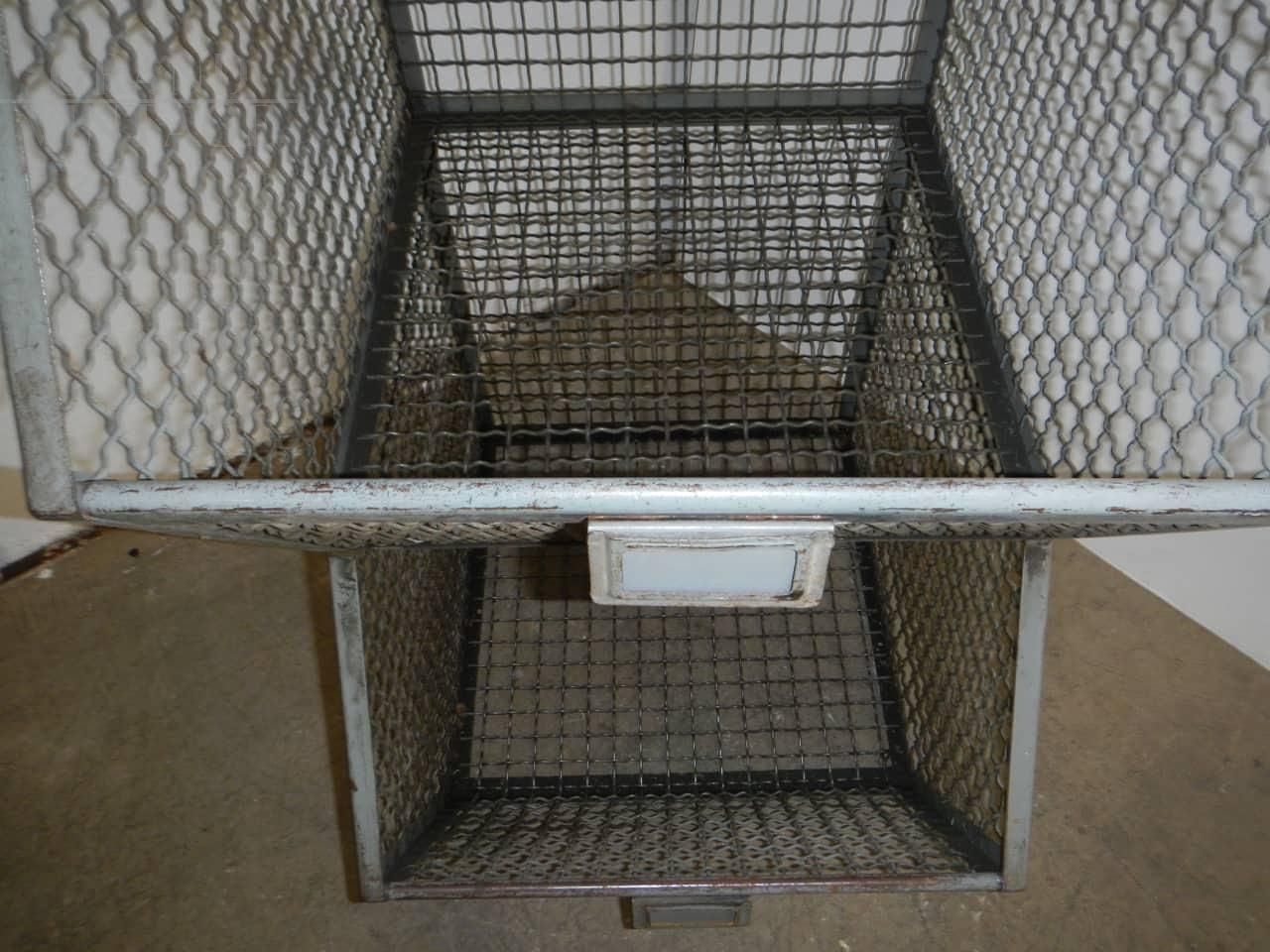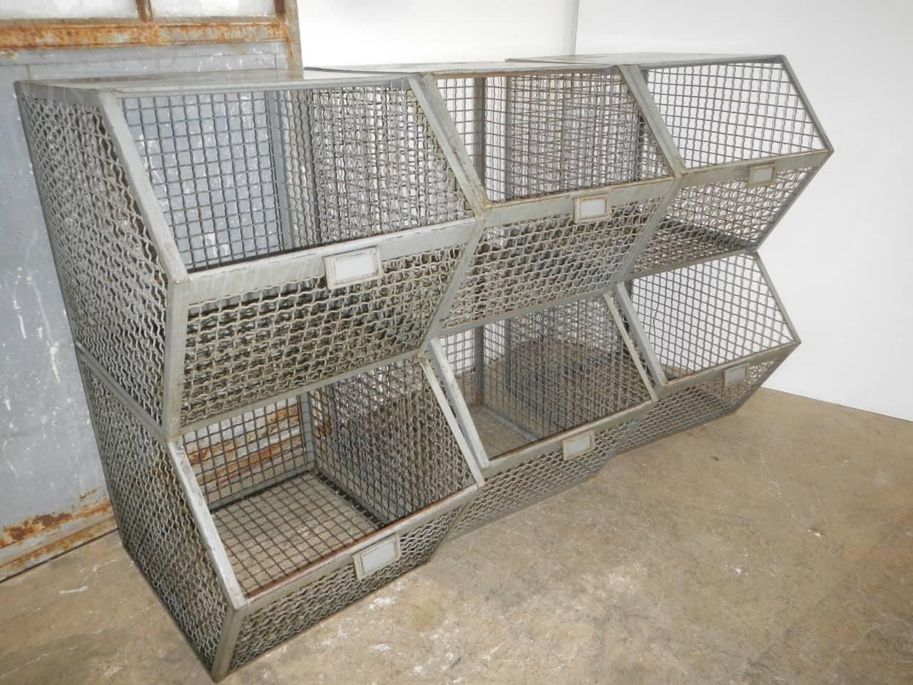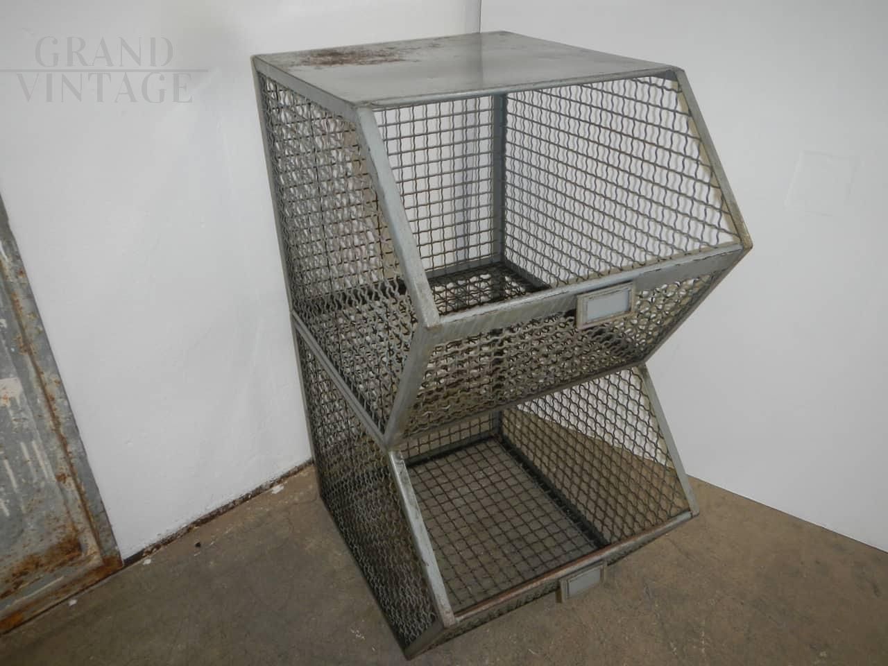 Vintage industrial furniture, double wire mesh baskets, two-tier vintage industrial baskets, 1970s