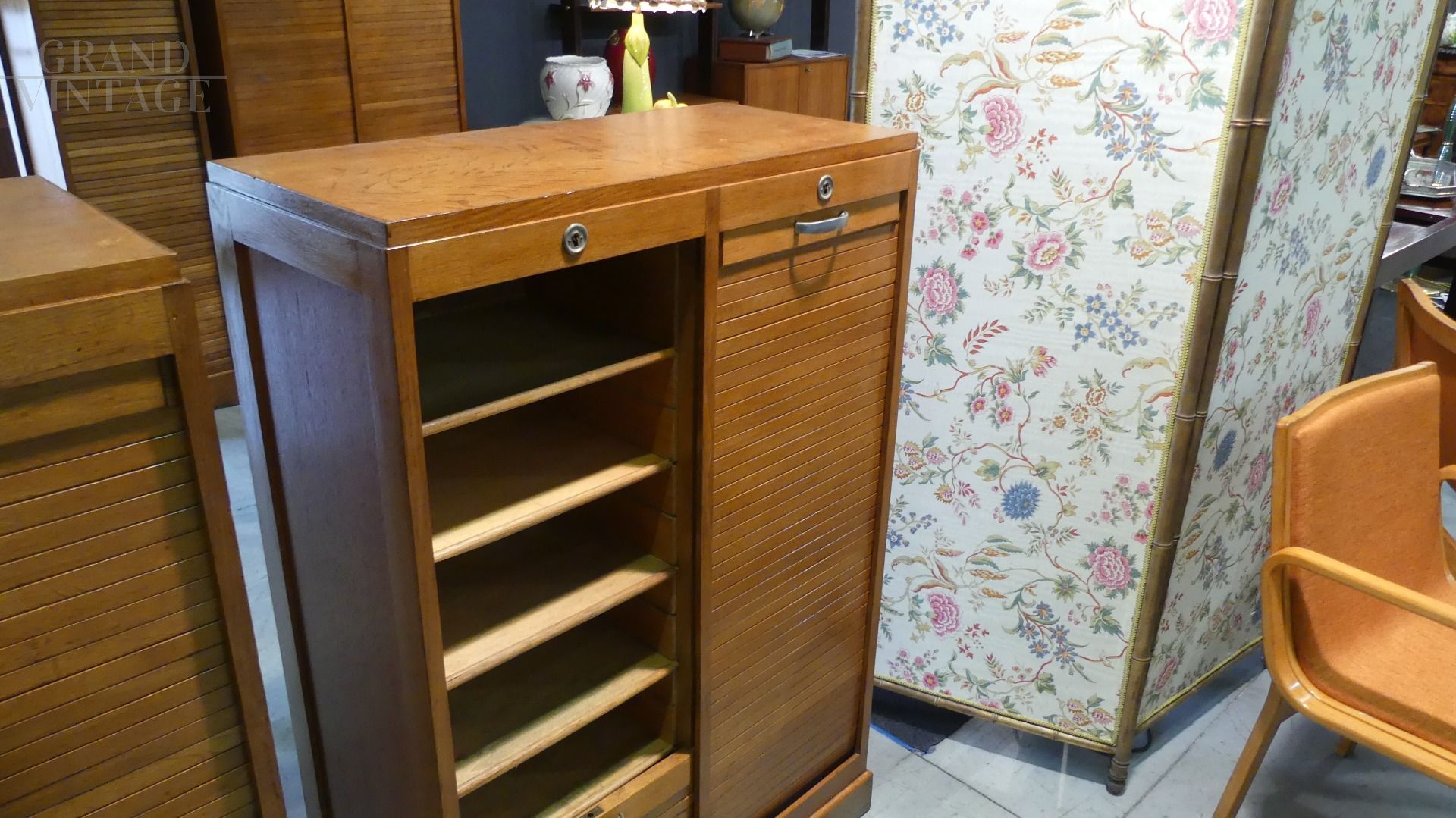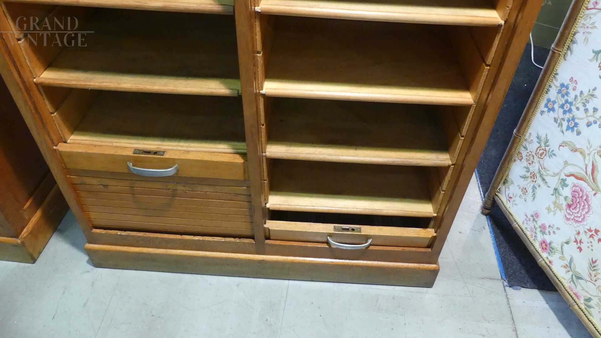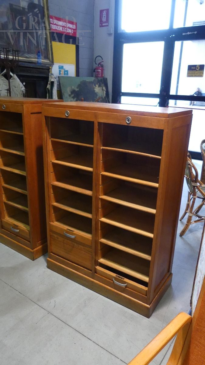 Double roller shutter filing cabinet in oak