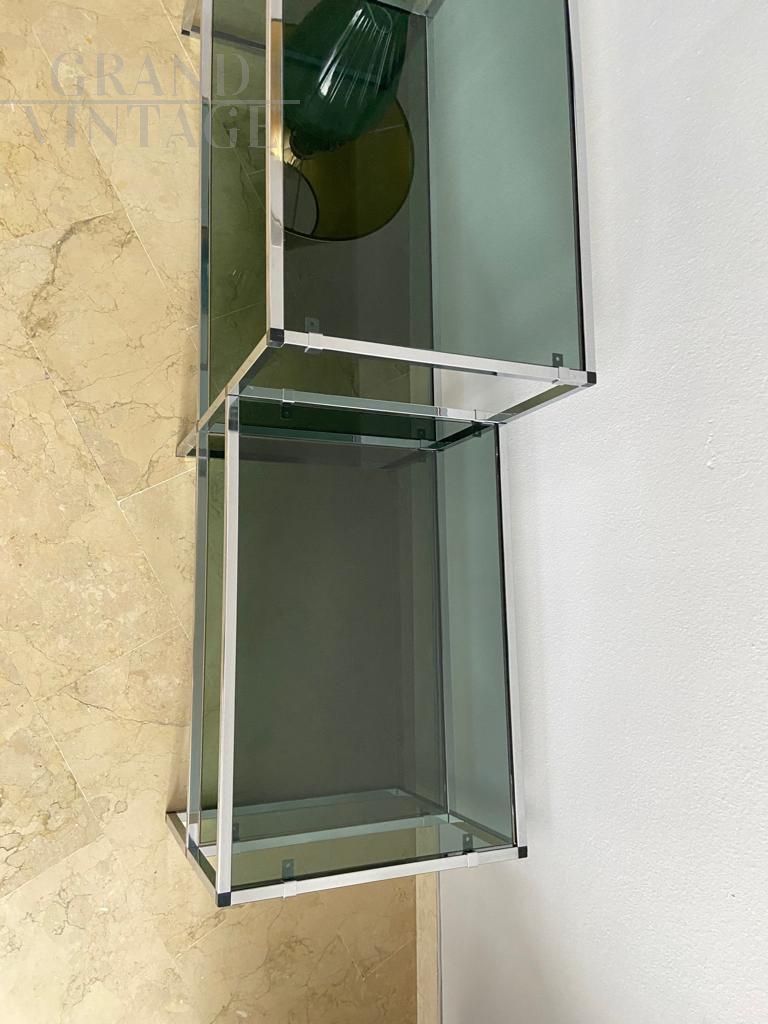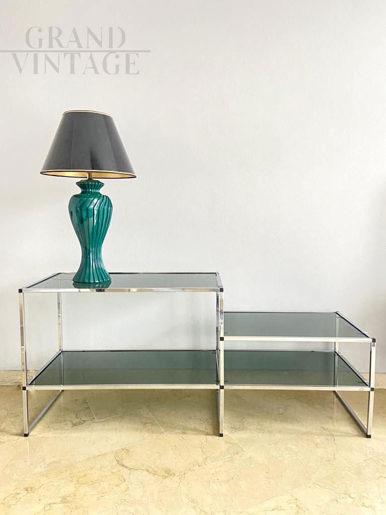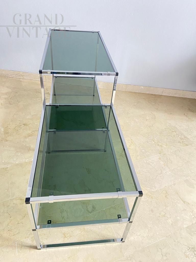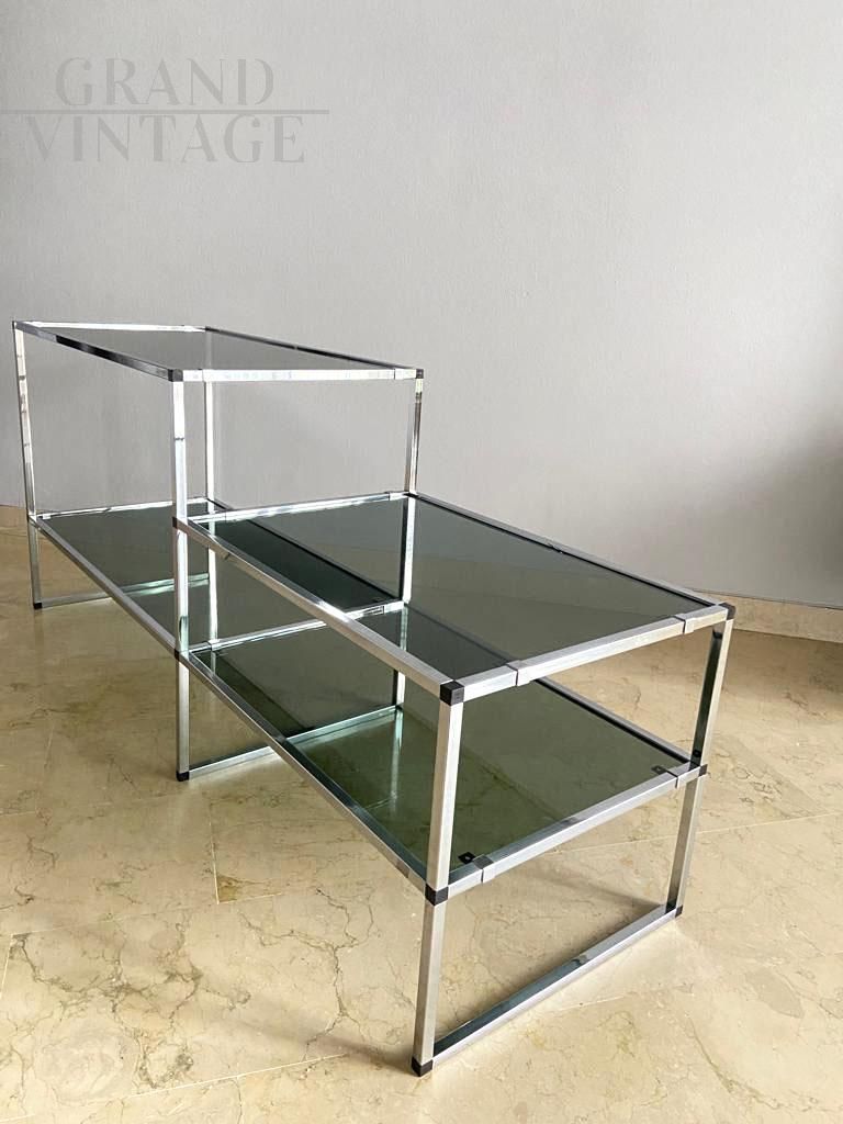 Double vintage console in chromed metal and smoked glass, Italy 1970s