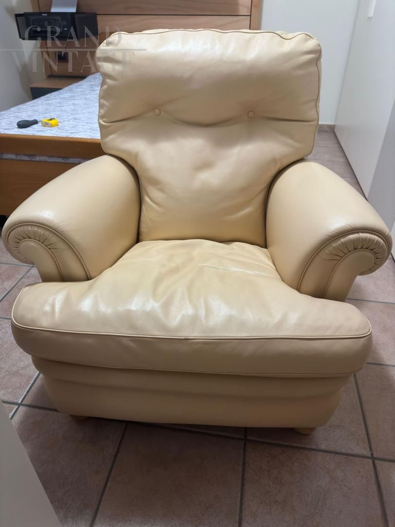 Dream armchair by Poltrona Frau in beige leather, in perfect condition. Collector's piece.
