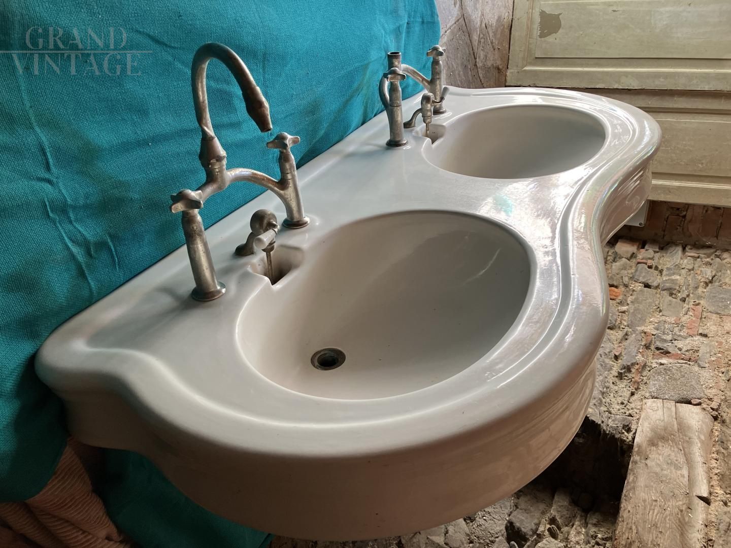 Early 20th century ceramic double sink washbasin