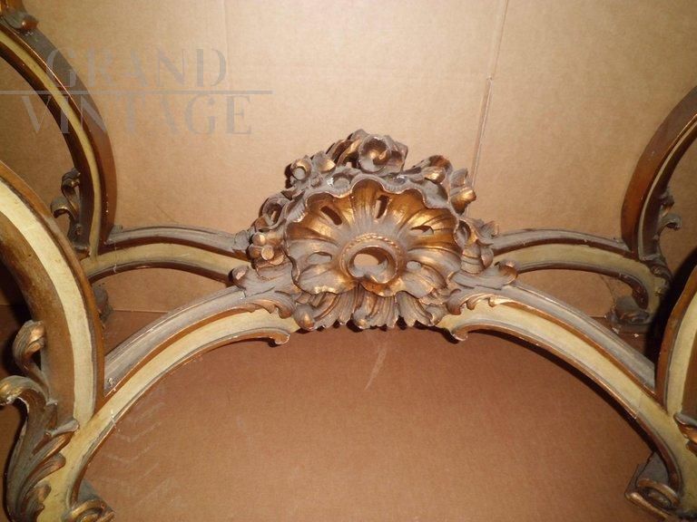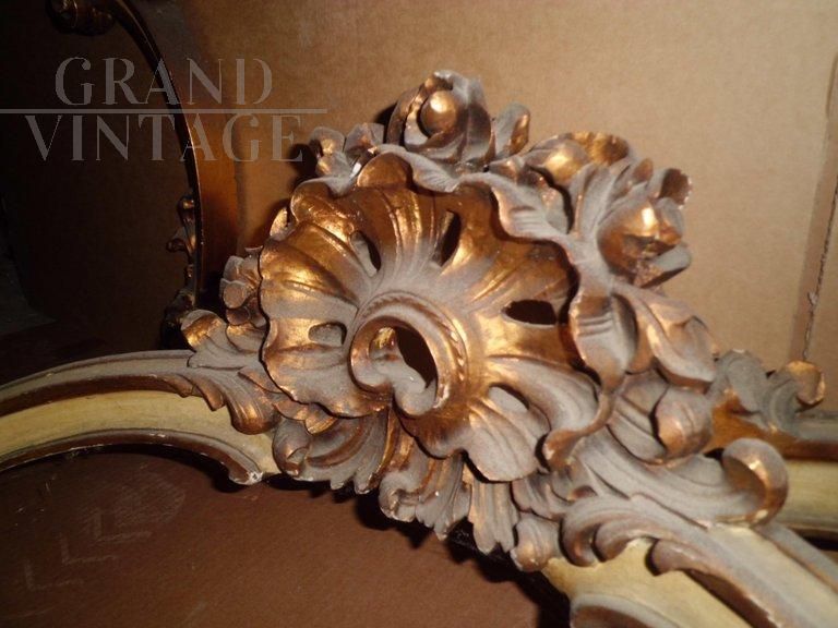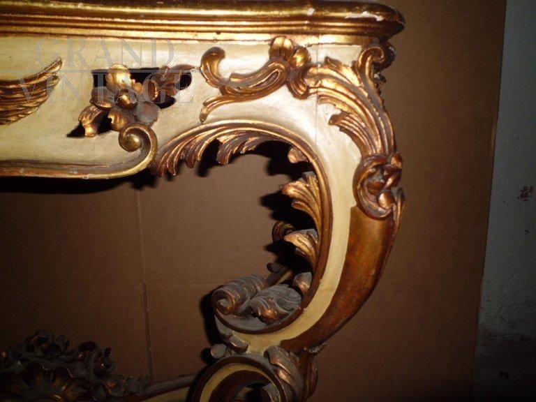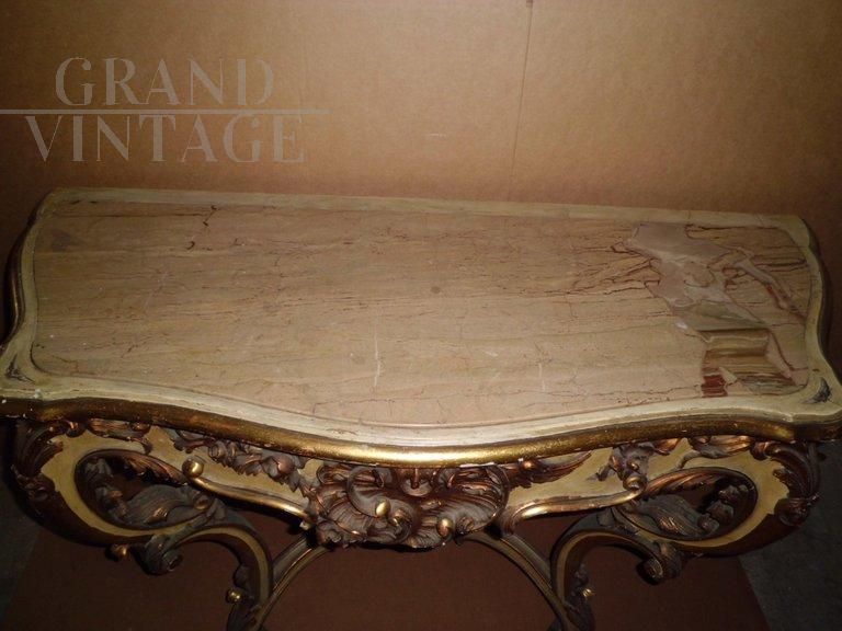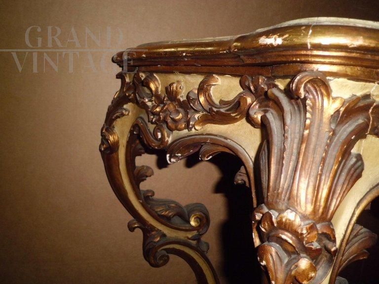 Regency style console made in 1910 in solid wood, in patina, with 24 kt gold details
