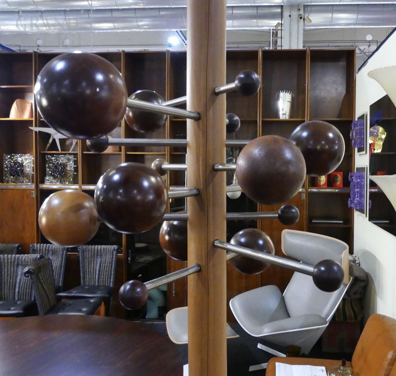 Measurements: the height is adjustable for a suitable fixing to every ceiling. The diameter, including the spheres, is approximately 50 cm, and varies depending on the arrangement of the spheres.