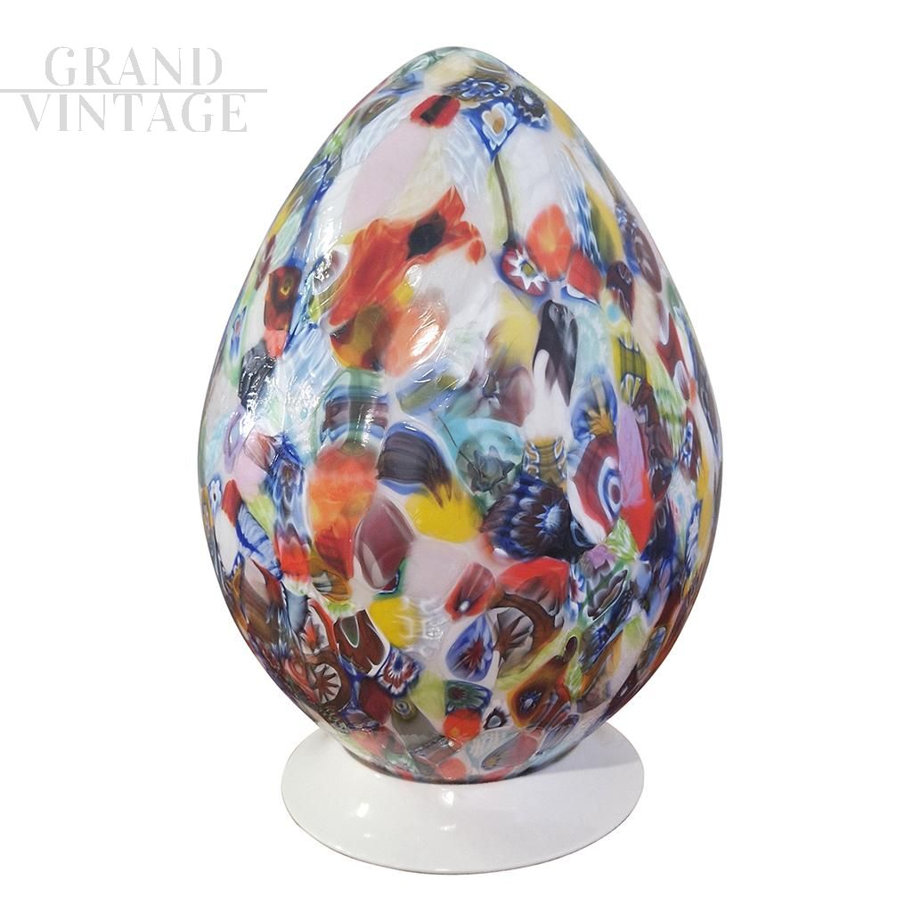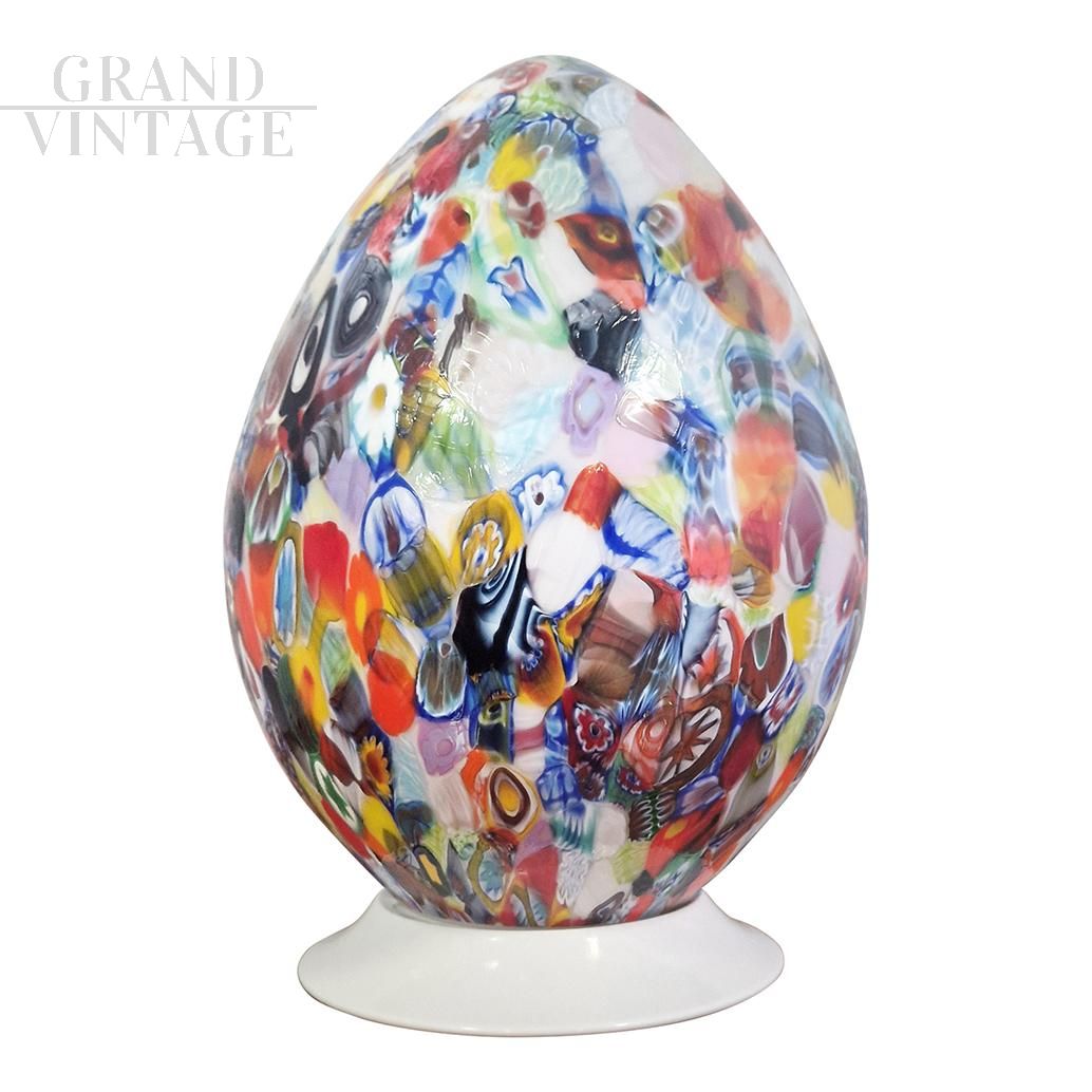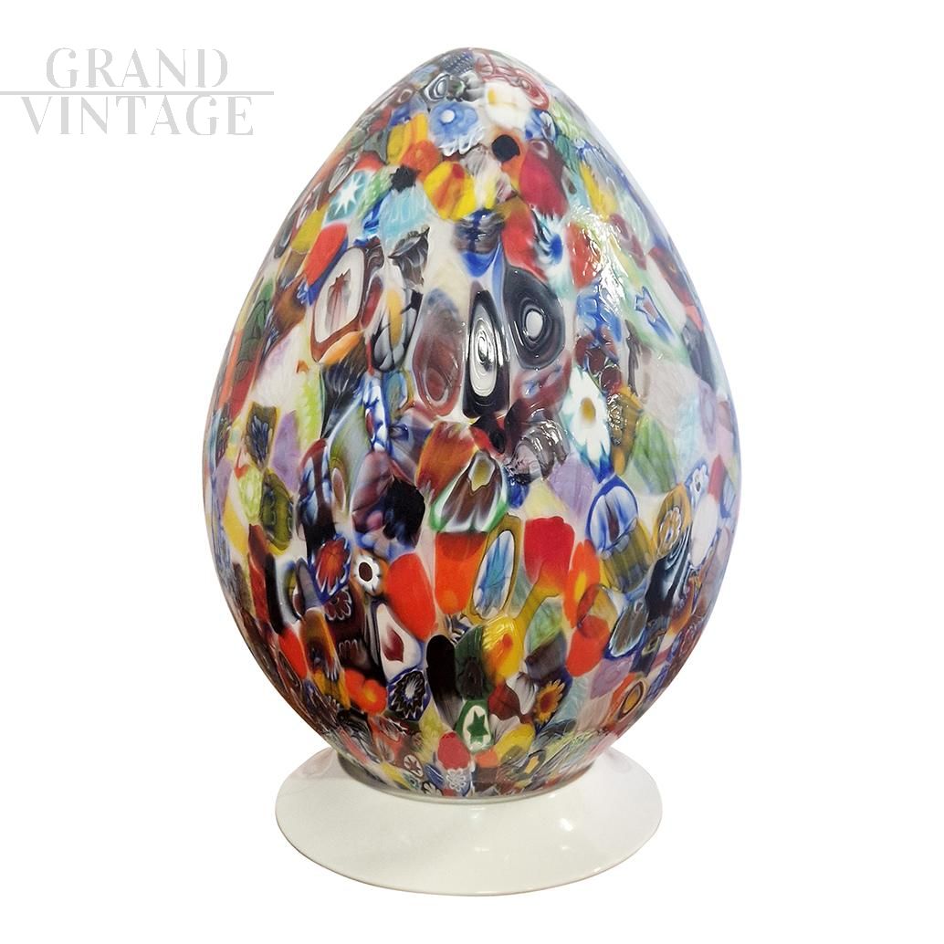 Wonderful Grand table lamp by La Murrina in Murano glass in the shape of an egg, hand-blown glass with typical Millefiori murrine workmanship in bright and vibrant colours.