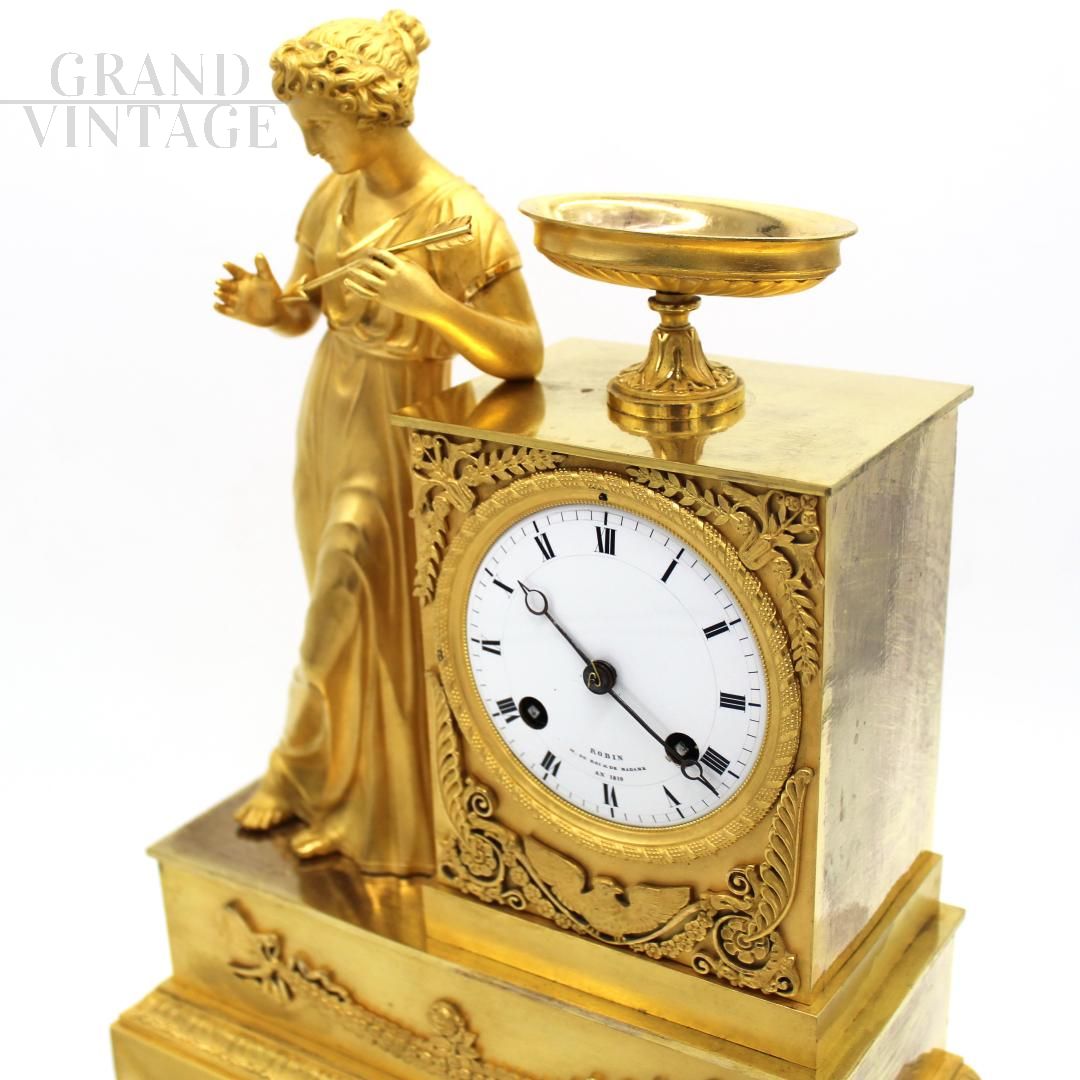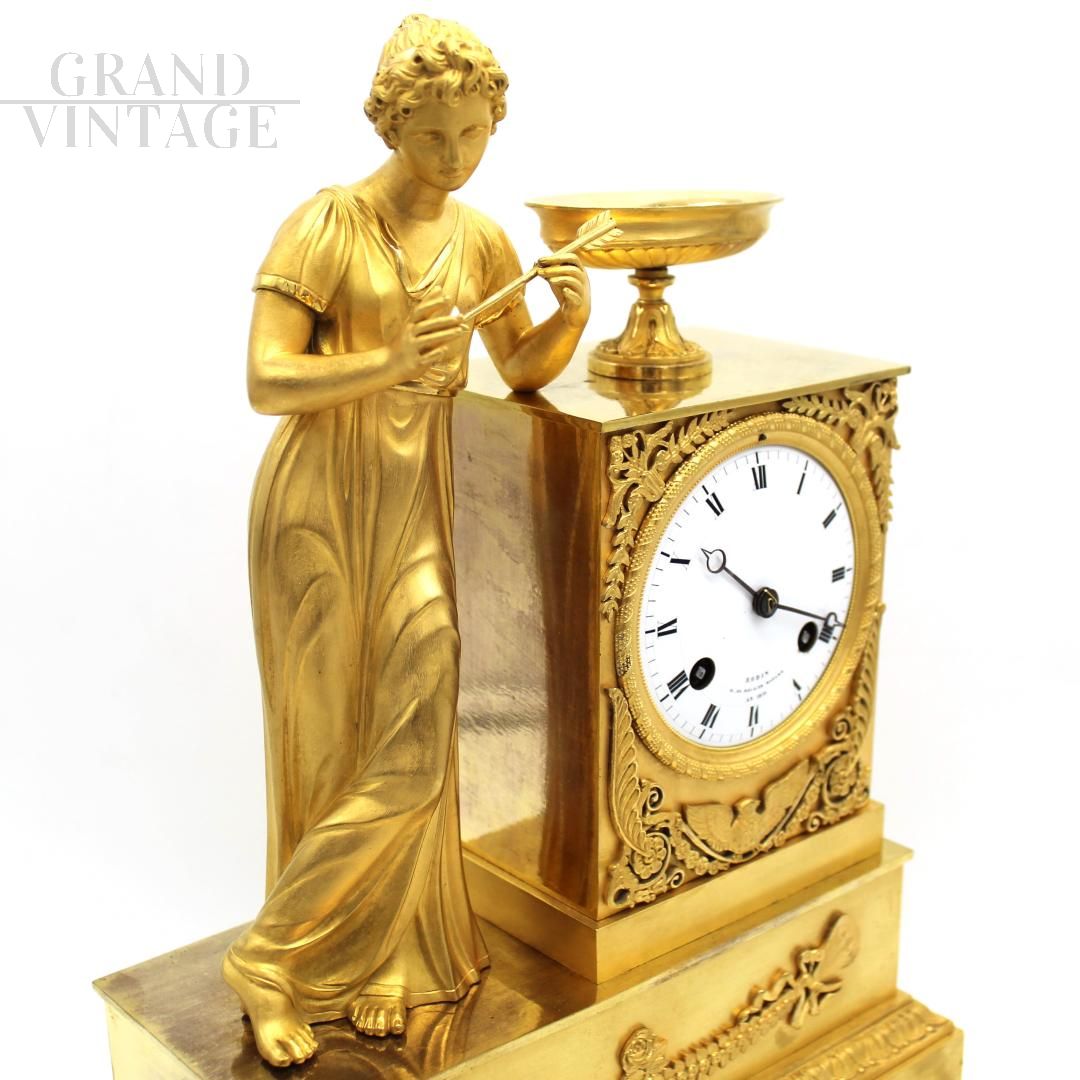 Empire Parisian clock in gilt bronze, signed and dated 1819