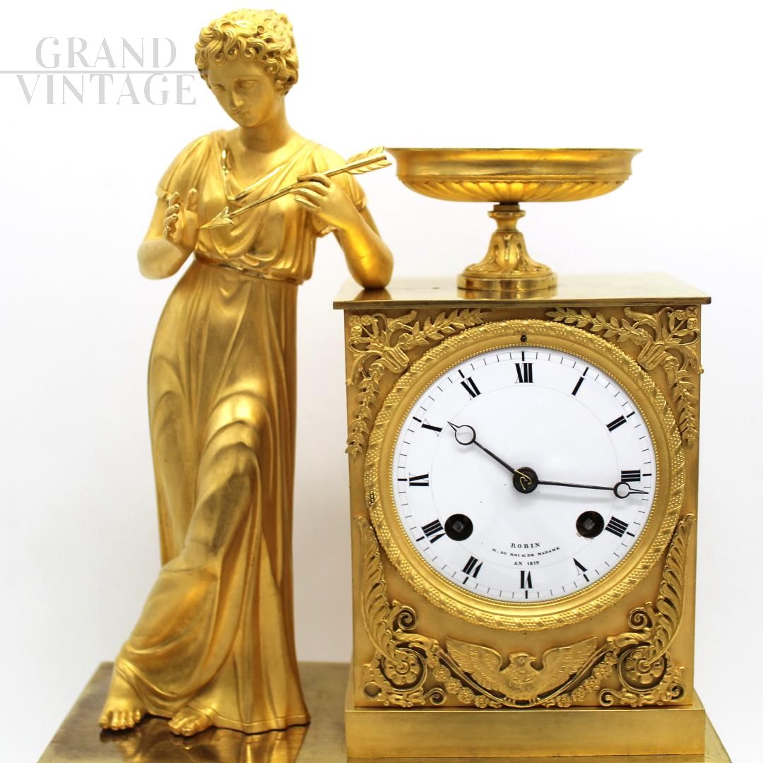 The clock has the dial signed and dated "Robin - h. Du ROI et de MADAME - an 1819", refers to Jean-Joseph Robin, watchmaker of the King (Louis XVIII) and Madame (Duchess of Angouleme).