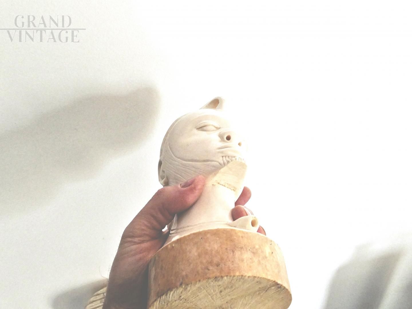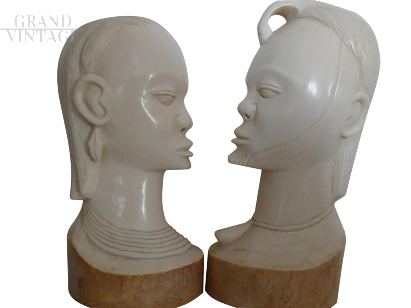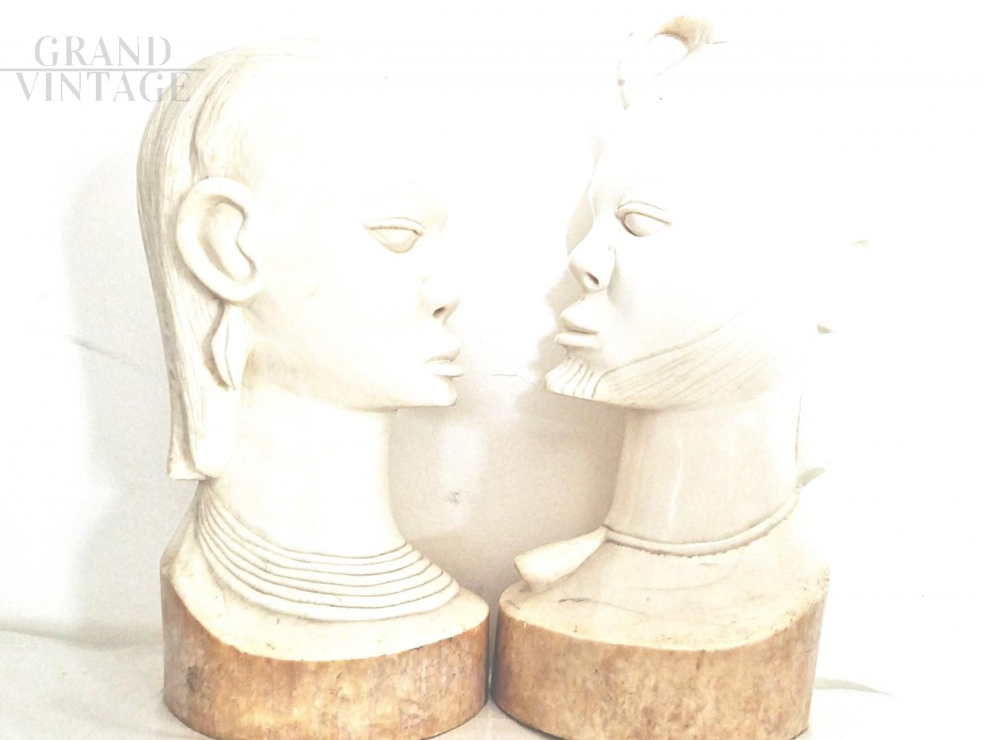 Pair of ethnic raw ivory sculptures, 20 cm (female) and 21 cm (male), representing the eternal love. Made by an artist from Cameroon in the late 1950s.