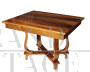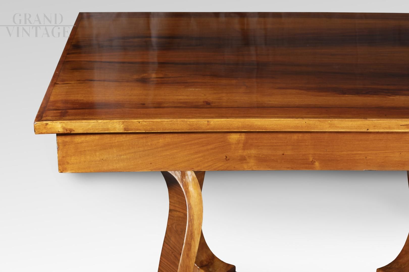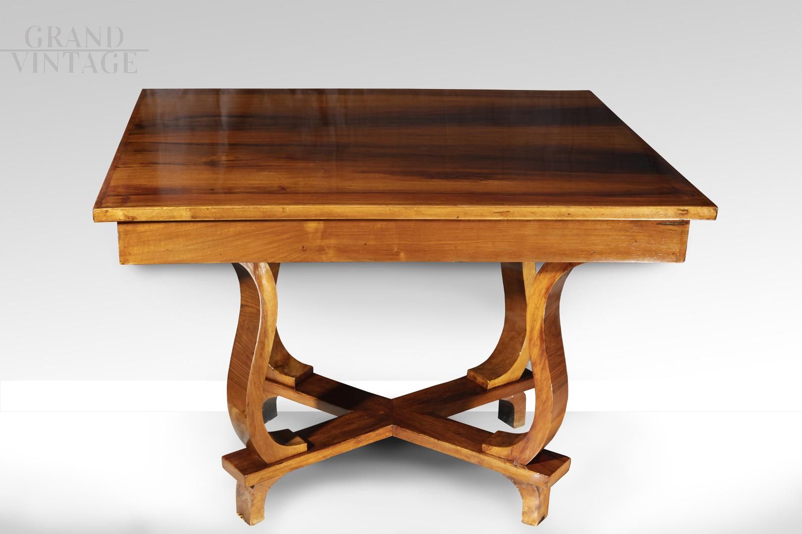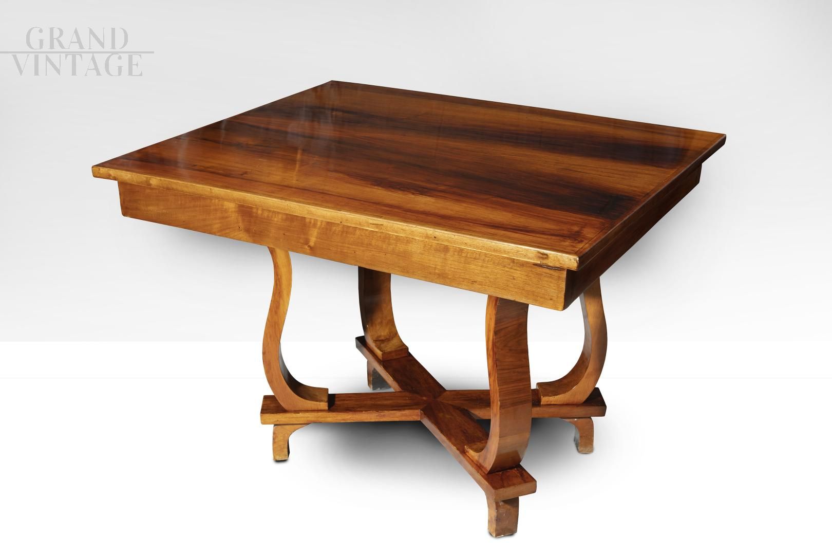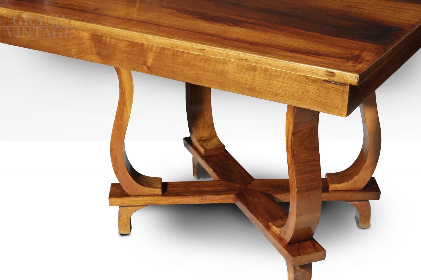 Extendable Art Deco table from the 1940s in cherry wood briar and walnut, in excellent condition, restored and polished with shellac, from Lombardy.