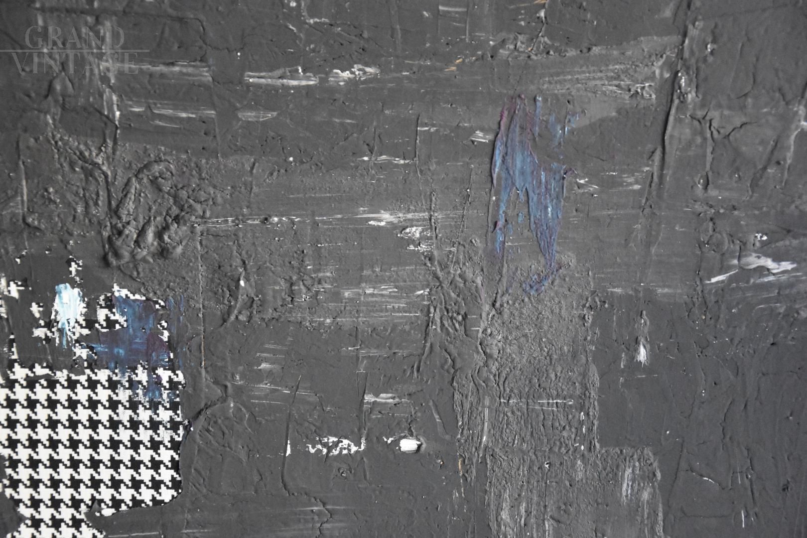 La Moda Irrompe - Fashion Breaks In - Abstract painting created by the Italian Lombard artist Andrea Busnelli (1989) with tempera, acrylics, cement and fabric on wood. Thanks to this mix of elements it really seems that fashion bursts into this work with strength and energy, creating different visions and effects. Different materials give life to a unique work, ideal for modern and design environments. Painting with certificate of originality signed by the artist.