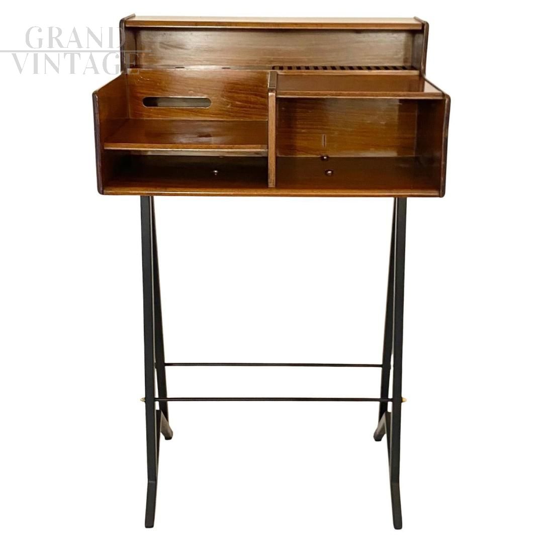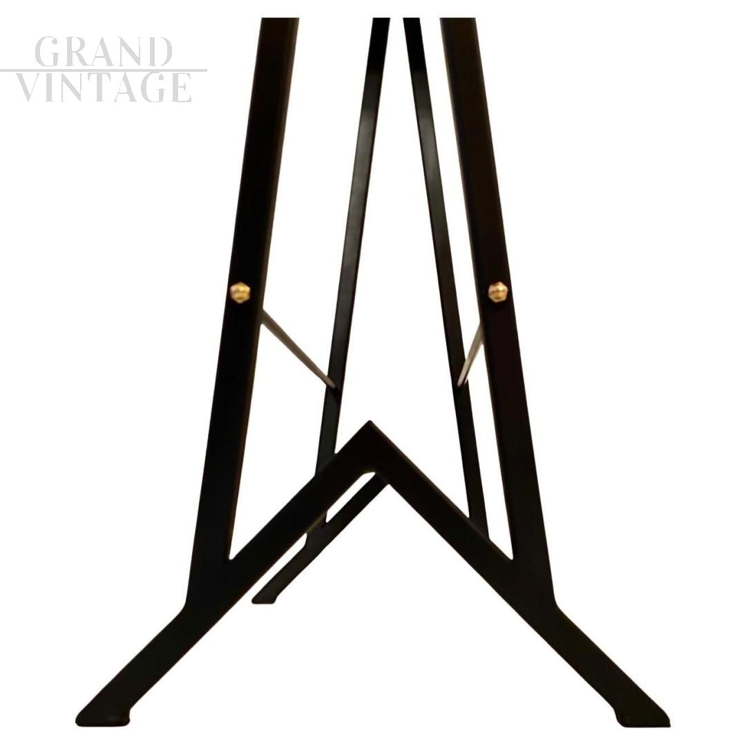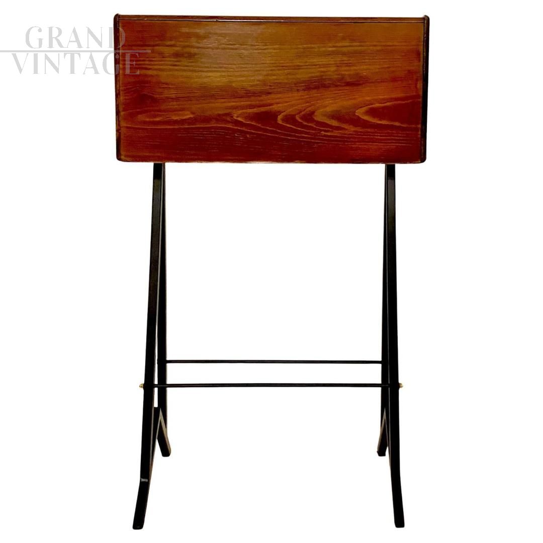 Small vintage console table in solid beech wood with high legs in black lacquered metal, produced by FIMSA Italia in the 1960s. Beautiful piece with semi-artisanal manufacturing with particular attention to detail. Restored, repainted legs, finished wood. In excellent condition with only a few natural signs of aging. Can be used as a console, side table, desk or bedside table.